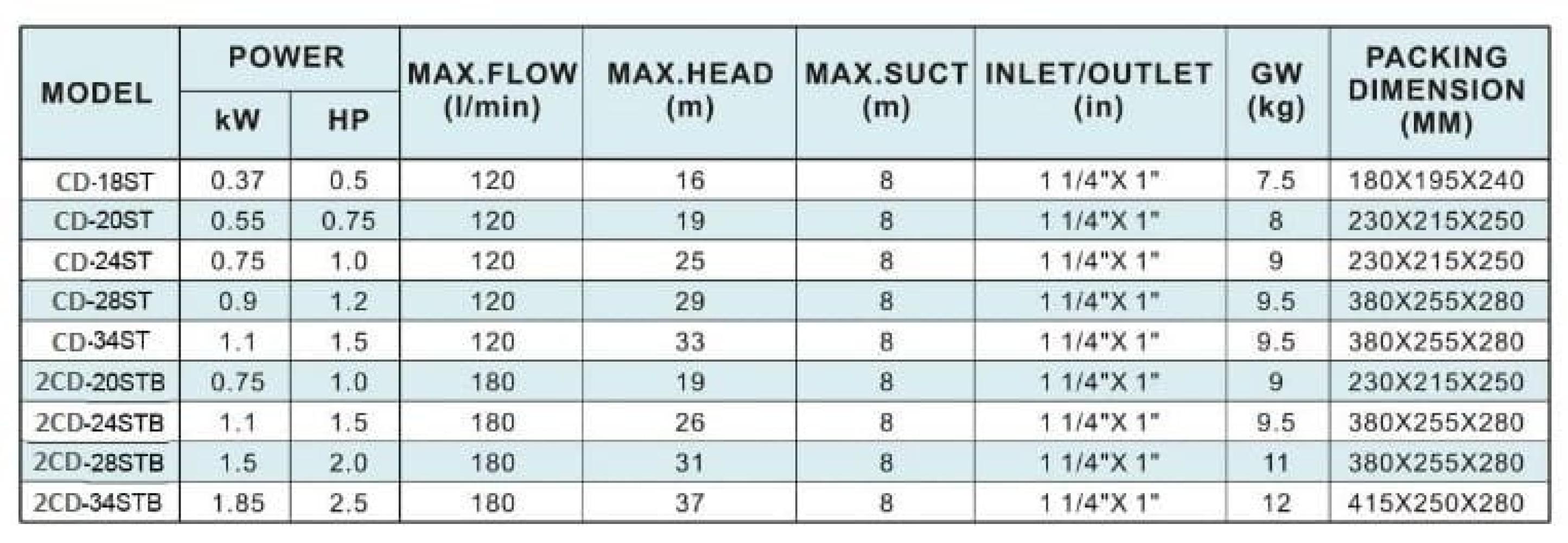 Проточная часть центробежных насосов серии 2CD (корпус, рабочие колеса, днище, вал) изготовлена из нержавеющей стали AISI 304. Насосы 2CD представляют собой двухступенчатые моноблочные насосы. Рабочие колеса размещены на удлиненном валу электродвигателя, а рабочая камера атмосферного давления торцевым механическим уплотнением, за счет такой конструкции насос прост в эксплуатации и обслуживании.