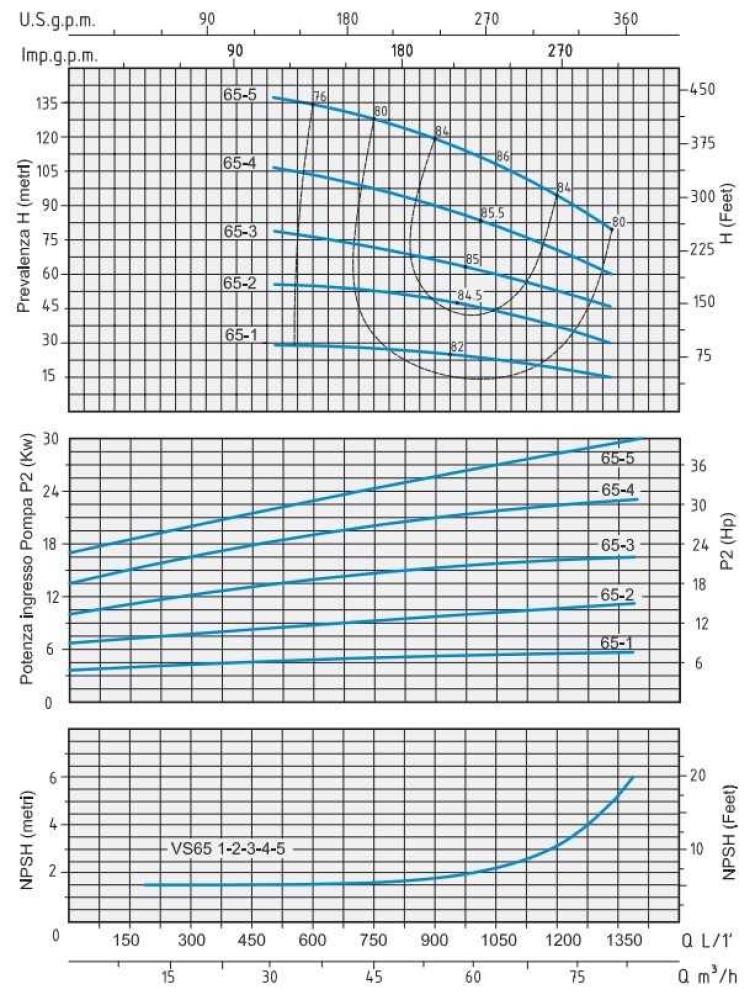 Универсальный многоступенчатый вертикальный насос Speroni серии VS/VSM с конструкцией патрубков «в линию». Применяется для бытового и коммунального водоснабжения, для перекачивания чистых взрывобезопасных жидкостей, не содержащих твердых и абразивных частиц, для полива в сельском хозяйстве, в системах кондиционирования, водоподготовки, обратно осмотических системах. Температура жидкости от 0°С до 110°С. Температура окружающей среды не более 40°С. Максимальное рабочее давление 25 бар. Стандартный электромотор (2900 об/мин) IM V1(IEC 34-7), класс изоляции F, класс защиты IP55. Всасывающая и подающая часть корпуса, рабочее колесо, наружный кожух, фланцы, верхняя и нижняя крышка, вал насоса изготовлены из нержавеющей стали AISI 304. Механическое торцевое уплотнение графит/кремний.