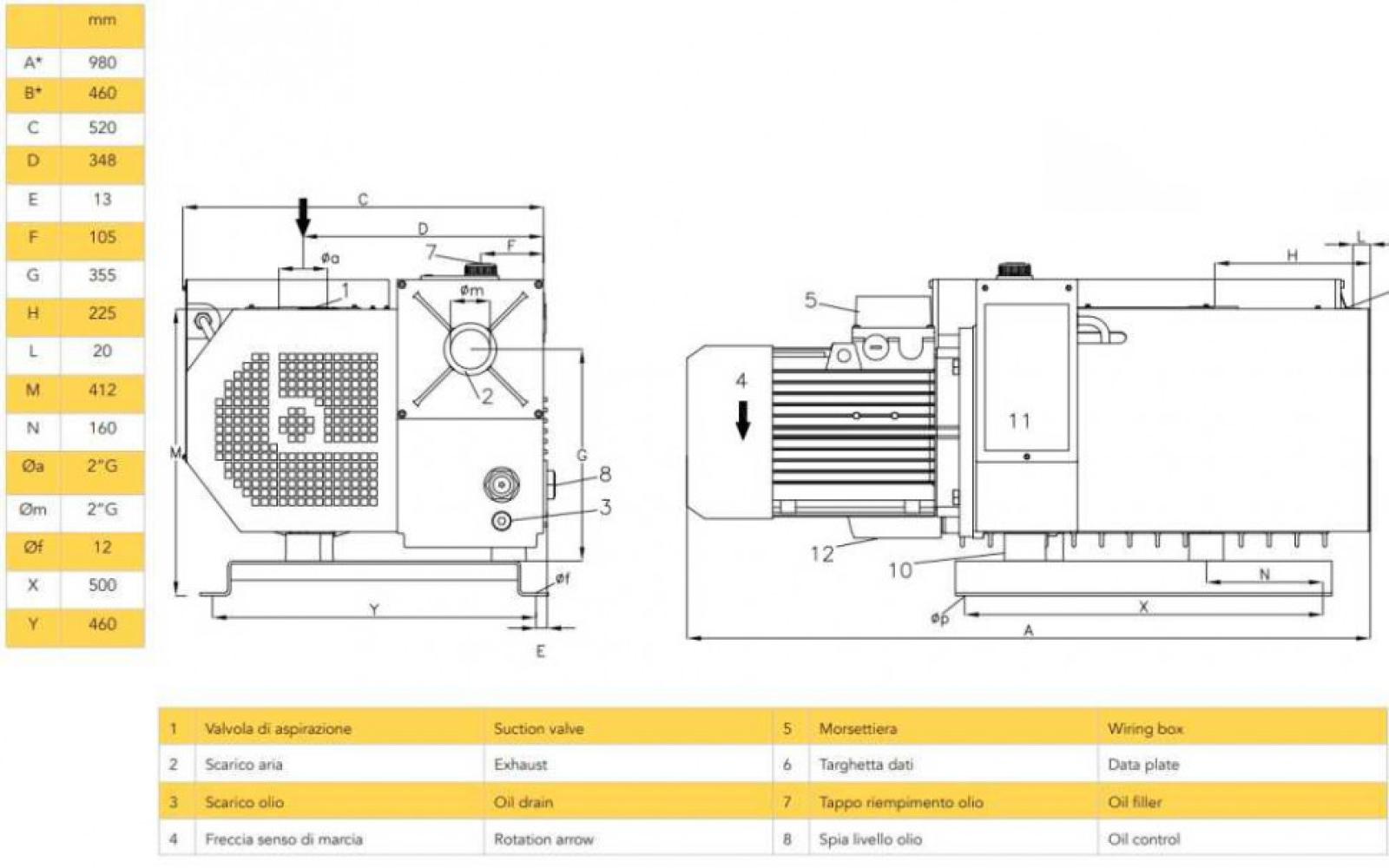 Корпус насоса изготовлен из высококачественного чугуна, масляный и воздушный сепаратор из алюминия. Двигатель соединен с рабочим органом при помощи гибкой муфты.