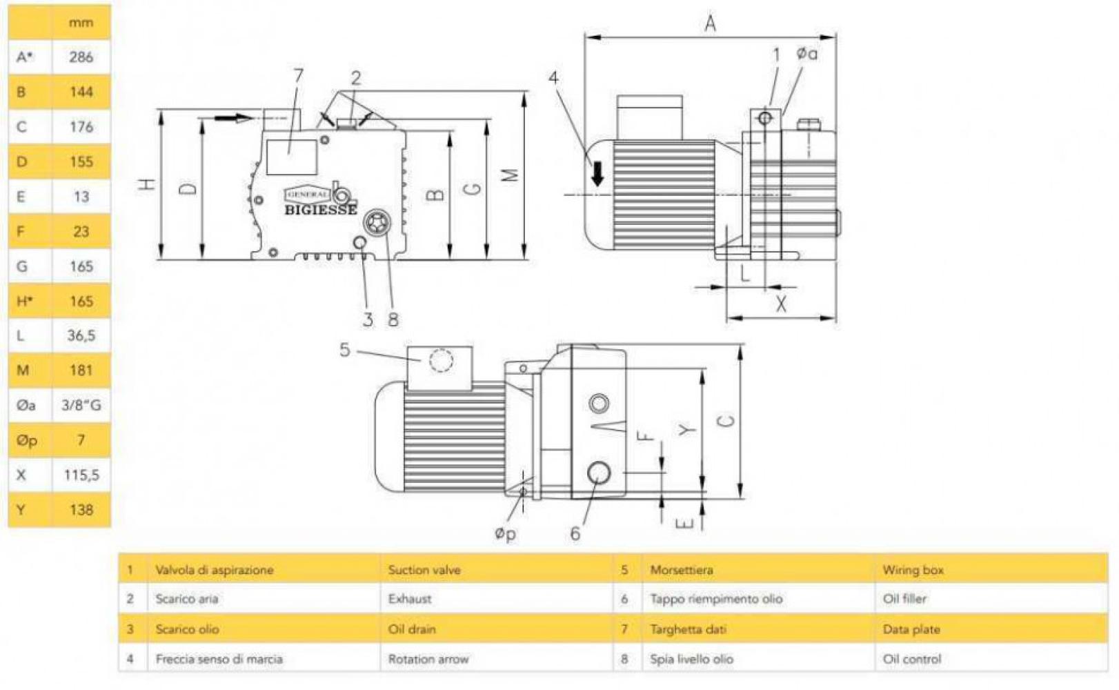 Корпус насоса изготовлен из высококачественного чугуна, масляный и воздушный сепаратор из алюминия. Двигатель соединен с рабочим органом при помощи гибкой муфты.