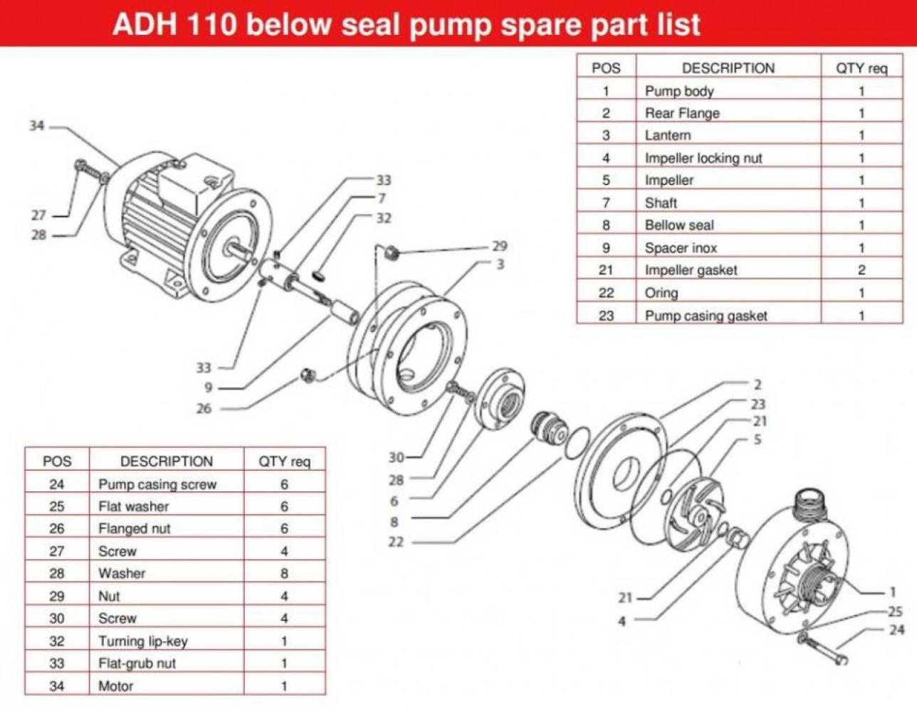 использовать специальные приспособления для предотвращения работы всухую, образования вихрей и возможного отсоса воздуха. Горизонтальный центробежный насос ADH должен работать с жидкостью, потому что работа всухую или наличие воздушных пузырей может повредить механическое уплотнение.