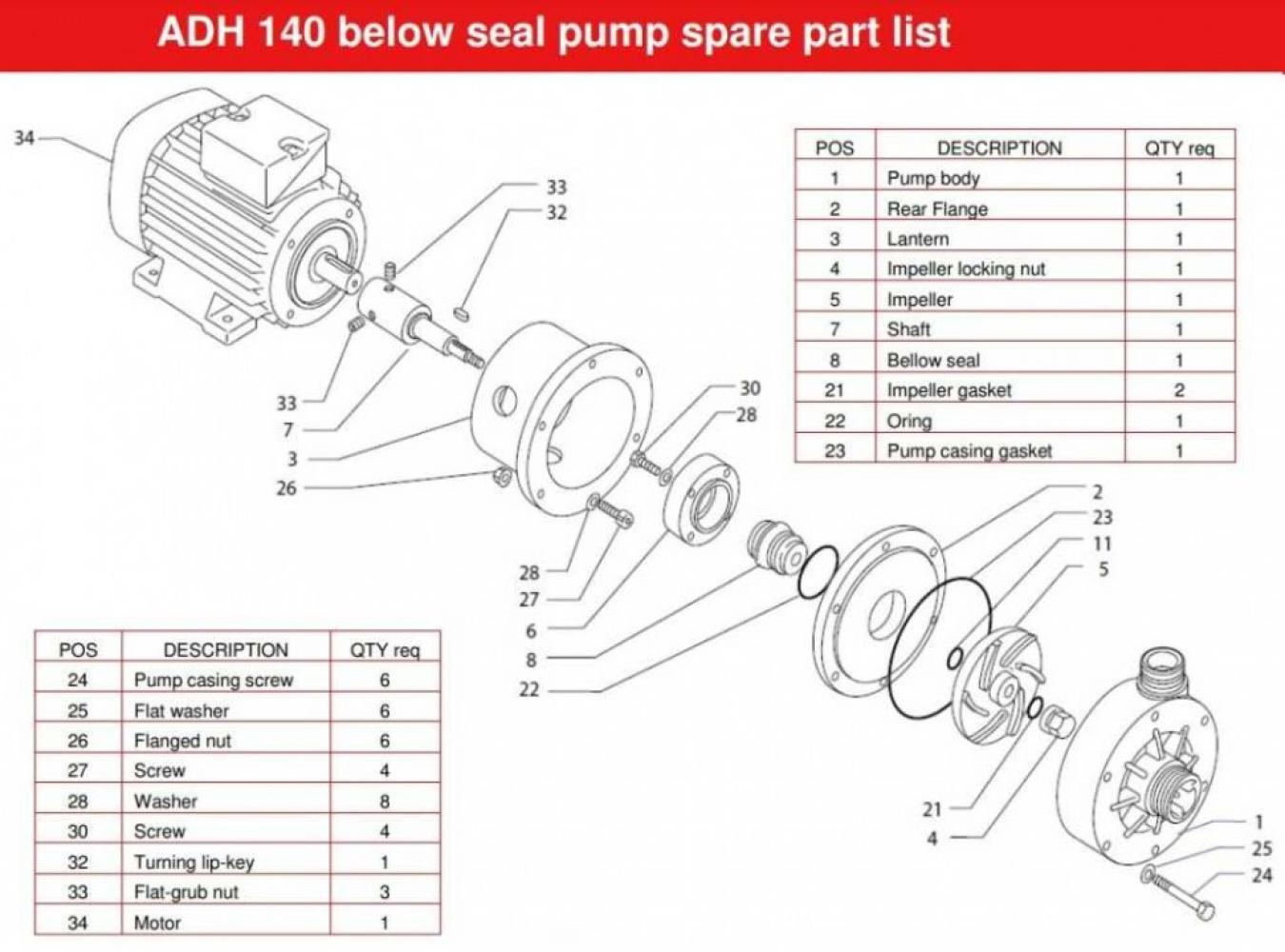 использовать специальные приспособления для предотвращения работы всухую, образования вихрей и возможного отсоса воздуха. Горизонтальный центробежный насос ADH должен работать с жидкостью, потому что работа всухую или наличие воздушных пузырей может повредить механическое уплотнение.