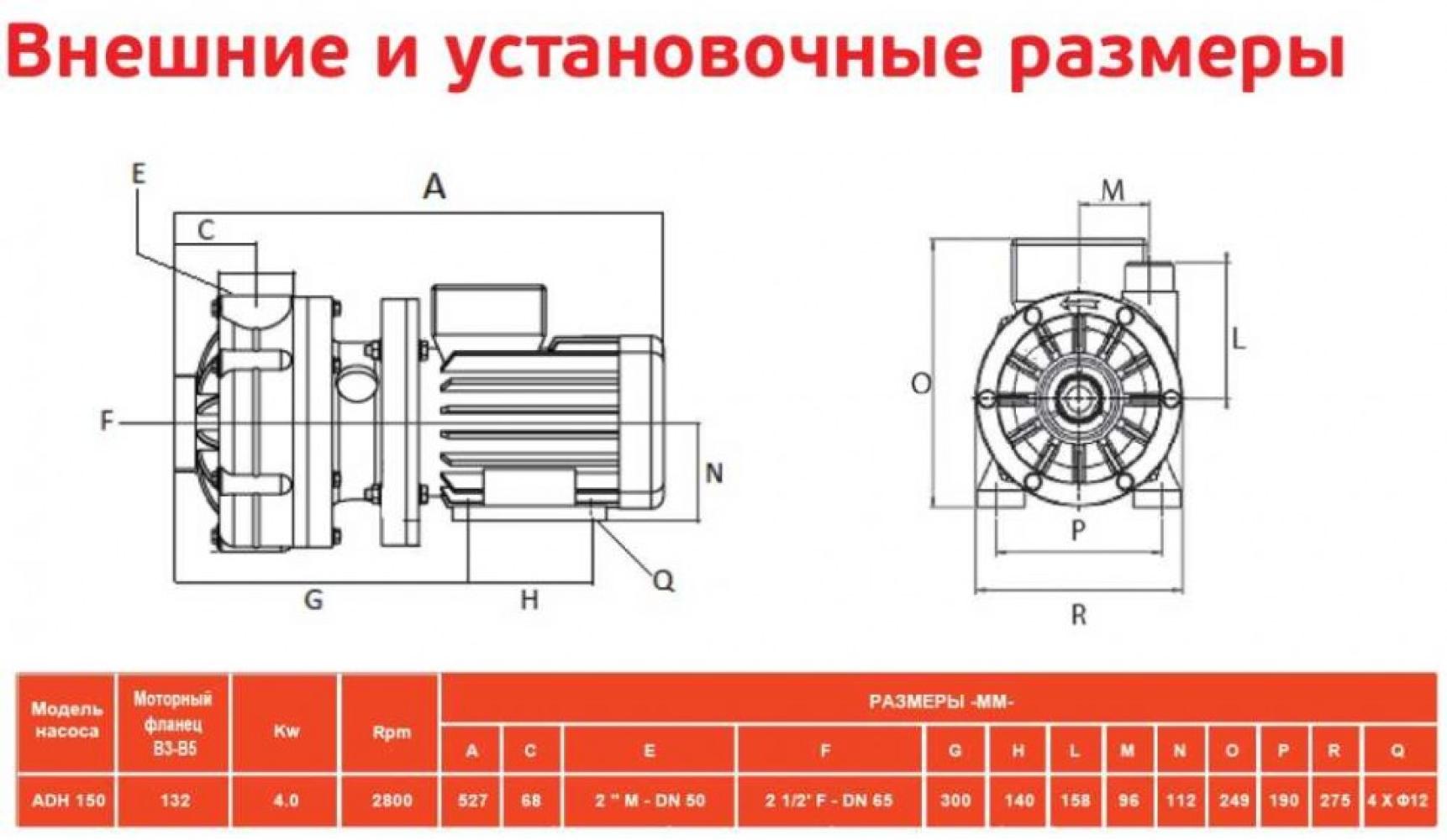 Установка: ось горизонтального центробежного насоса ADH при установке должна располагаться исключительно горизонтальным образом, а высота столба жидкости находиться над всасывающим патрубком насоса. Необходимо