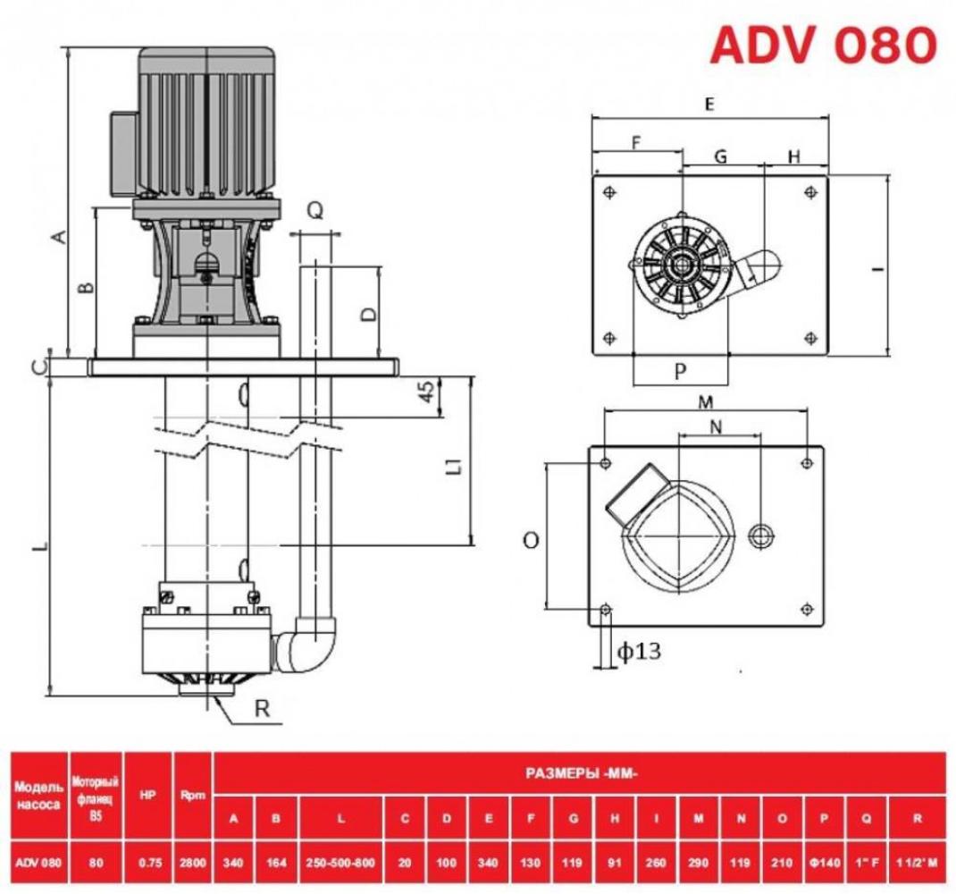 Ось вертикальных центробежных насосов ADV при установке должна располагаться исключительно вертикальным образом и насос должен быть погружен в емкость. Насосы должны устанавливаться таким образом, чтобы предотвратить работу всухую, образования вихрей и возможный отсос воздуха. Эти насосы должны работать исключительно в затопленном состоянии; работа всухую или наличие воздушных пузырей повредят внутреннюю втулку.