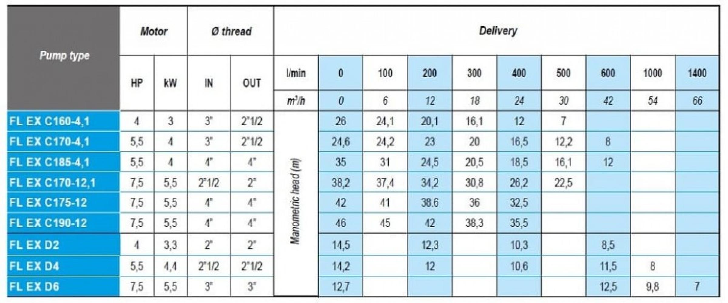 Двигатель: асинхронный двигатель ATEX, 50 Гц, 2 полюса серии FL EX a 2800 об/мин, 4 полюса серии FL EX B 1400 об / мин.; II 2G или II 2D защиту; рабочее напряжение: трехфазное 380V; температура окружающей среды: минимум -20 °C максимум + 40 °C.