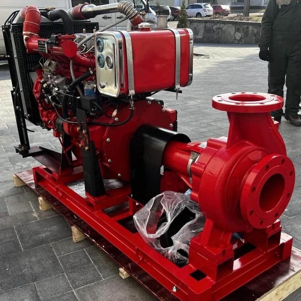 Дизельная насосная станция включает в себя: насос, дизельный двигатель, радиатор, топливный бак, опорную раму, карданный вал, воздушный фильтр, пульт управления, глушитель.