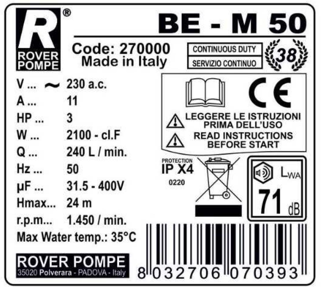 Обычное обслуживание требует небольшого количества простых вмешательств, как если бы это был обычный бытовой прибор. После использования слейте чистую воду, чтобы промыть внутренние поверхности насоса. Электродвигатель не требует обслуживания, деталей для смазки нет. Внешние части необходимо очистить слегка влажной губкой, а затем сразу же высушить тряпкой.