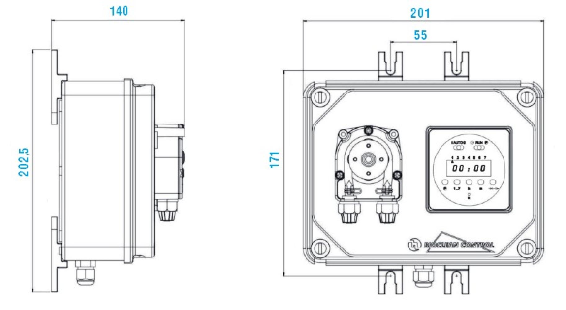 BIOCLEAN CONTROL PER – блок дозирования химических реагентов (активного кислорода, гипохлорита натрия, коагулянтов, флокулянтов, моющих препаратов и пр.) по таймеру.