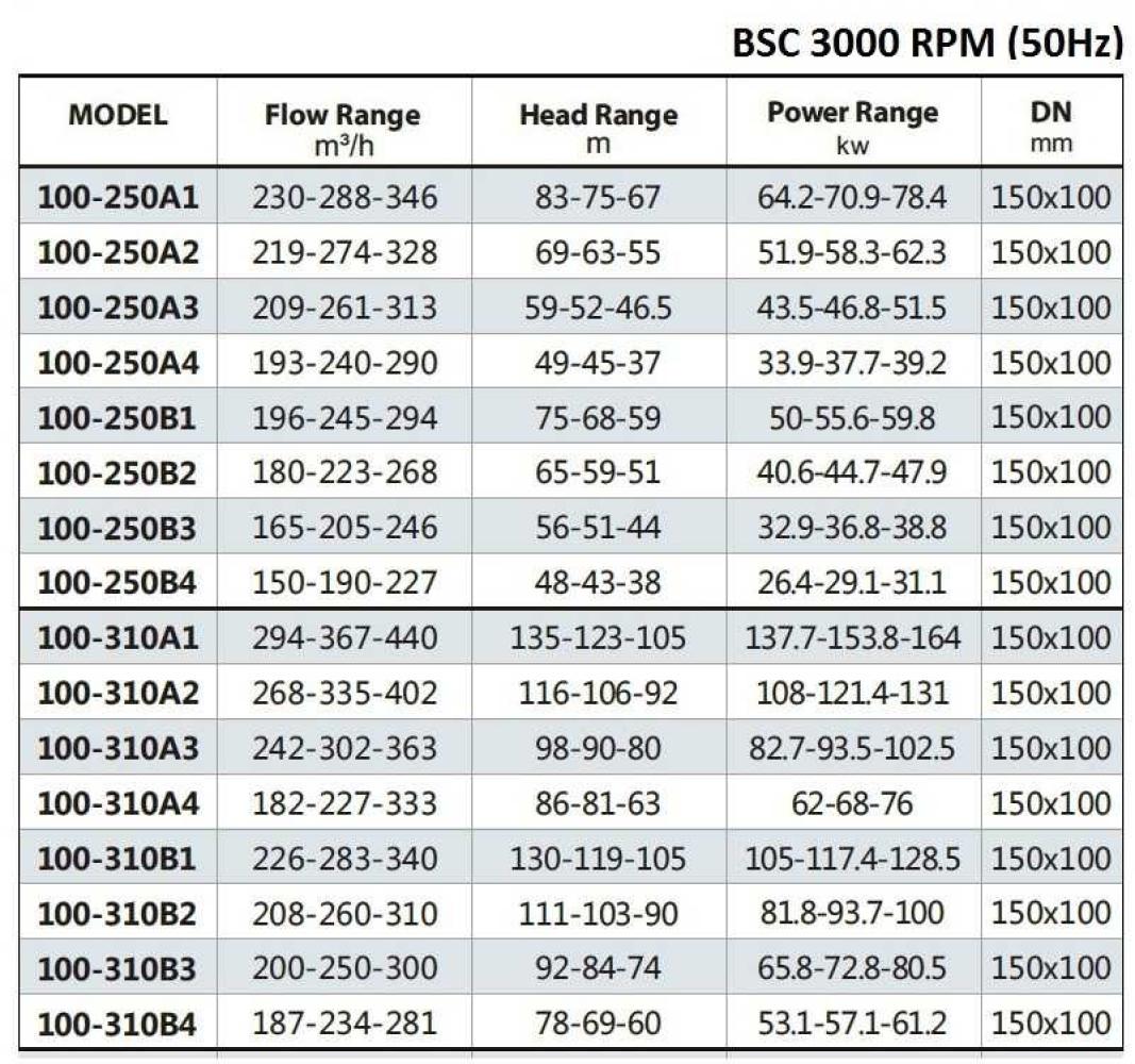от других центробежных насосов является особенность подвода жидкости к рабочему колесу. Всасывание происходит таким образом, что жидкость попадает в крыльчатку лопастного типа с двух сторон. Физически это сделано для того, чтобы скомпенсировать осевую силу, которая в случае одностороннего подвода жидкости, воздействует на рабочее колесо в одном направлении. При незначительных параметрах насоса это не имеет значения. Поэтому насосы этого типа разработаны специально для задач, когда насос должен обладать большой производительностью. Вторым плюсом насосов двухстороннего входа является то, что они имеют всасывающий и напорный патрубки расположенные так, что подвод и отвод жидкости происходит горизонтально, а не под углом 900, как это выполнено у большинства центробежных насосов.. Этот плюс заключается в том, что легче производить установку таких насосных агрегатов. Еще один плюс конструкции насосов двустороннего входа BSC заключается в том, что насосная часть легко разбирается – верхняя крышка прикручена болтами, а не вылита целиком, как единый корпус, что бывает практически у всех моделей центробежных насосов. Это позволяет производить ремонт и обслуживание насосной части на месте без демонтажа агрегата от трубопровода.