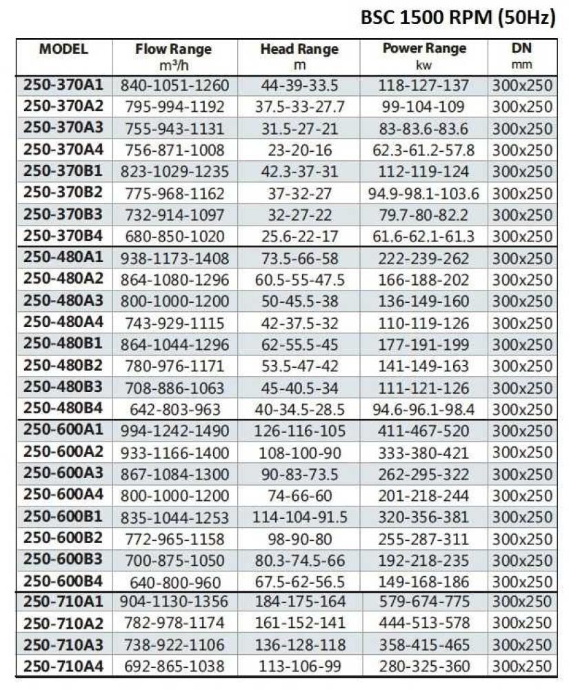 от других центробежных насосов является особенность подвода жидкости к рабочему колесу. Всасывание происходит таким образом, что жидкость попадает в крыльчатку лопастного типа с двух сторон. Физически это сделано для того, чтобы скомпенсировать осевую силу, которая в случае одностороннего подвода жидкости, воздействует на рабочее колесо в одном направлении. При незначительных параметрах насоса это не имеет значения. Поэтому насосы этого типа разработаны специально для задач, когда насос должен обладать большой производительностью. Вторым плюсом насосов двухстороннего входа является то, что они имеют всасывающий и напорный патрубки расположенные так, что подвод и отвод жидкости происходит горизонтально, а не под углом 900, как это выполнено у большинства центробежных насосов.. Этот плюс заключается в том, что легче производить установку таких насосных агрегатов. Еще один плюс конструкции насосов двустороннего входа BSC заключается в том, что насосная часть легко разбирается – верхняя крышка прикручена болтами, а не вылита целиком, как единый корпус, что бывает практически у всех моделей центробежных насосов. Это позволяет производить ремонт и обслуживание насосной части на месте без демонтажа агрегата от трубопровода.