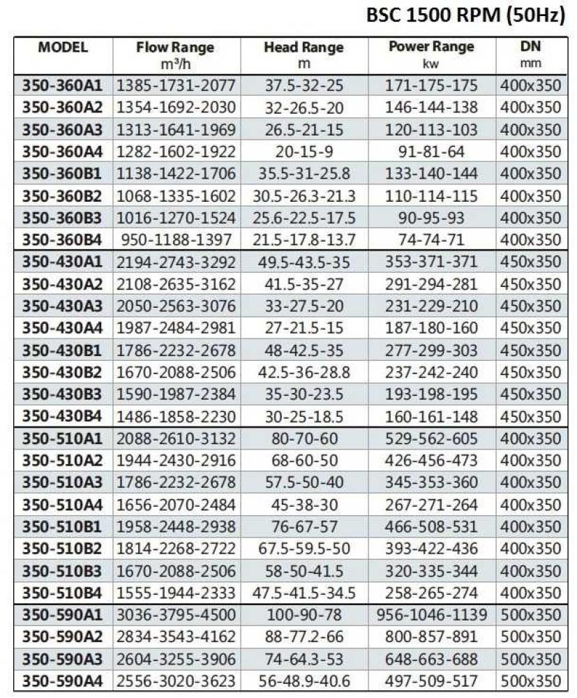 от других центробежных насосов является особенность подвода жидкости к рабочему колесу. Всасывание происходит таким образом, что жидкость попадает в крыльчатку лопастного типа с двух сторон. Физически это сделано для того, чтобы скомпенсировать осевую силу, которая в случае одностороннего подвода жидкости, воздействует на рабочее колесо в одном направлении. При незначительных параметрах насоса это не имеет значения. Поэтому насосы этого типа разработаны специально для задач, когда насос должен обладать большой производительностью. Вторым плюсом насосов двухстороннего входа является то, что они имеют всасывающий и напорный патрубки расположенные так, что подвод и отвод жидкости происходит горизонтально, а не под углом 900, как это выполнено у большинства центробежных насосов.. Этот плюс заключается в том, что легче производить установку таких насосных агрегатов. Еще один плюс конструкции насосов двустороннего входа BSC заключается в том, что насосная часть легко разбирается – верхняя крышка прикручена болтами, а не вылита целиком, как единый корпус, что бывает практически у всех моделей центробежных насосов. Это позволяет производить ремонт и обслуживание насосной части на месте без демонтажа агрегата от трубопровода.