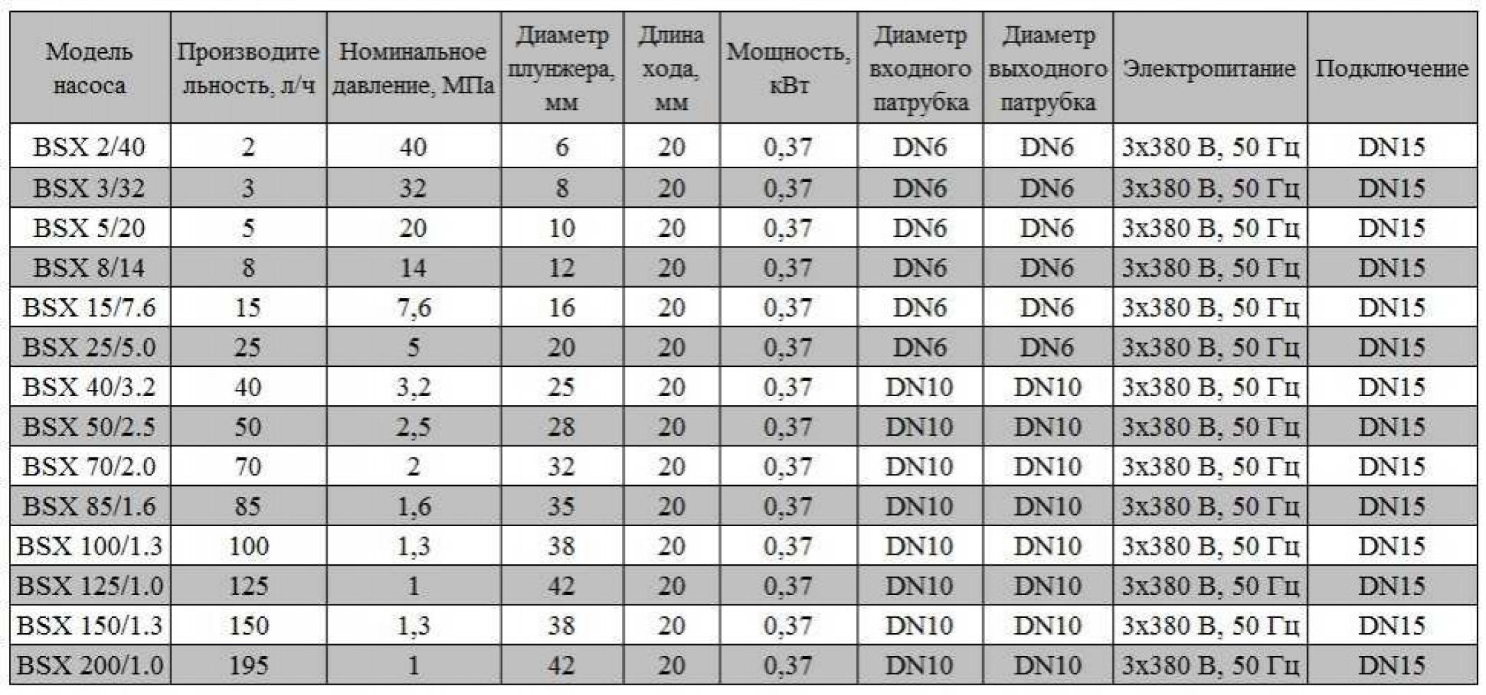 - доступно специальное исполнения для высоких и низких температур (с рубашкой охлаждения или подогрева). Насос изготовляется с применением следующих материалов: Головка насоса: AISI304, AISI316; Корпус насоса: чугун; Плунжер: керамический или AISI316 с керамическим покрытием; Уплотнение: PTFE и AISI316. Клапаны: AISI304, AISI316. Шаровой клапан: AISI304, AISI316, керамика. Возможна комплектация взрывозащищенным двигателем.