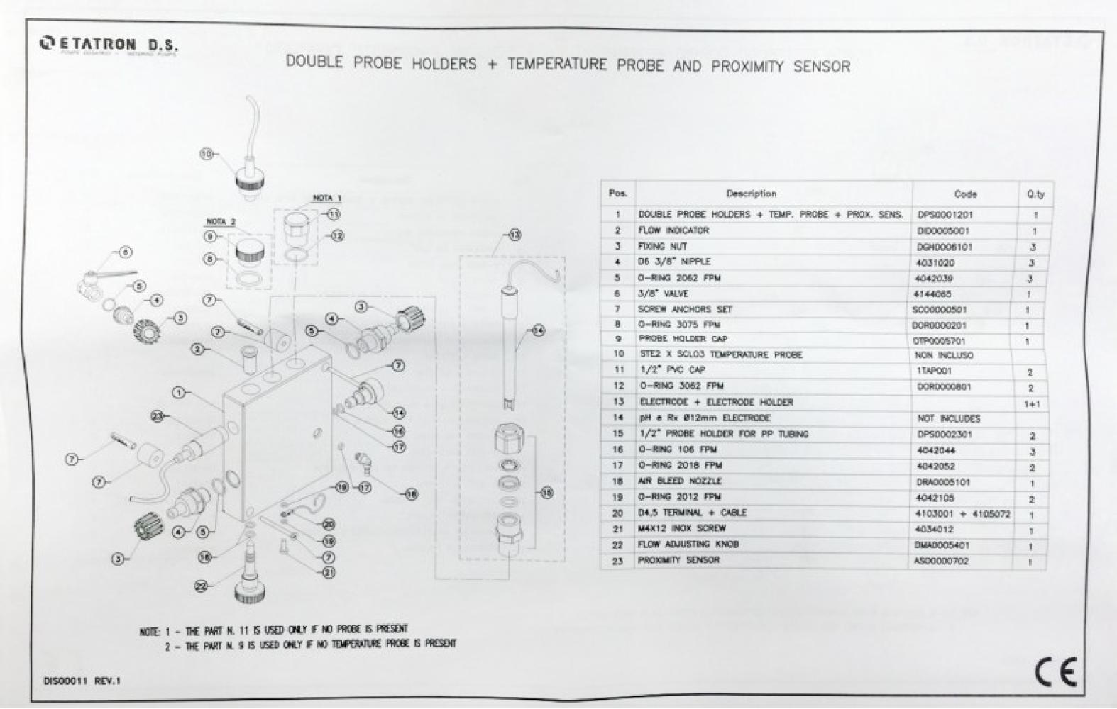 - В датчике предусмотрено место для установки датчиков (электродов) уровня рН и RedOx (ОВП).