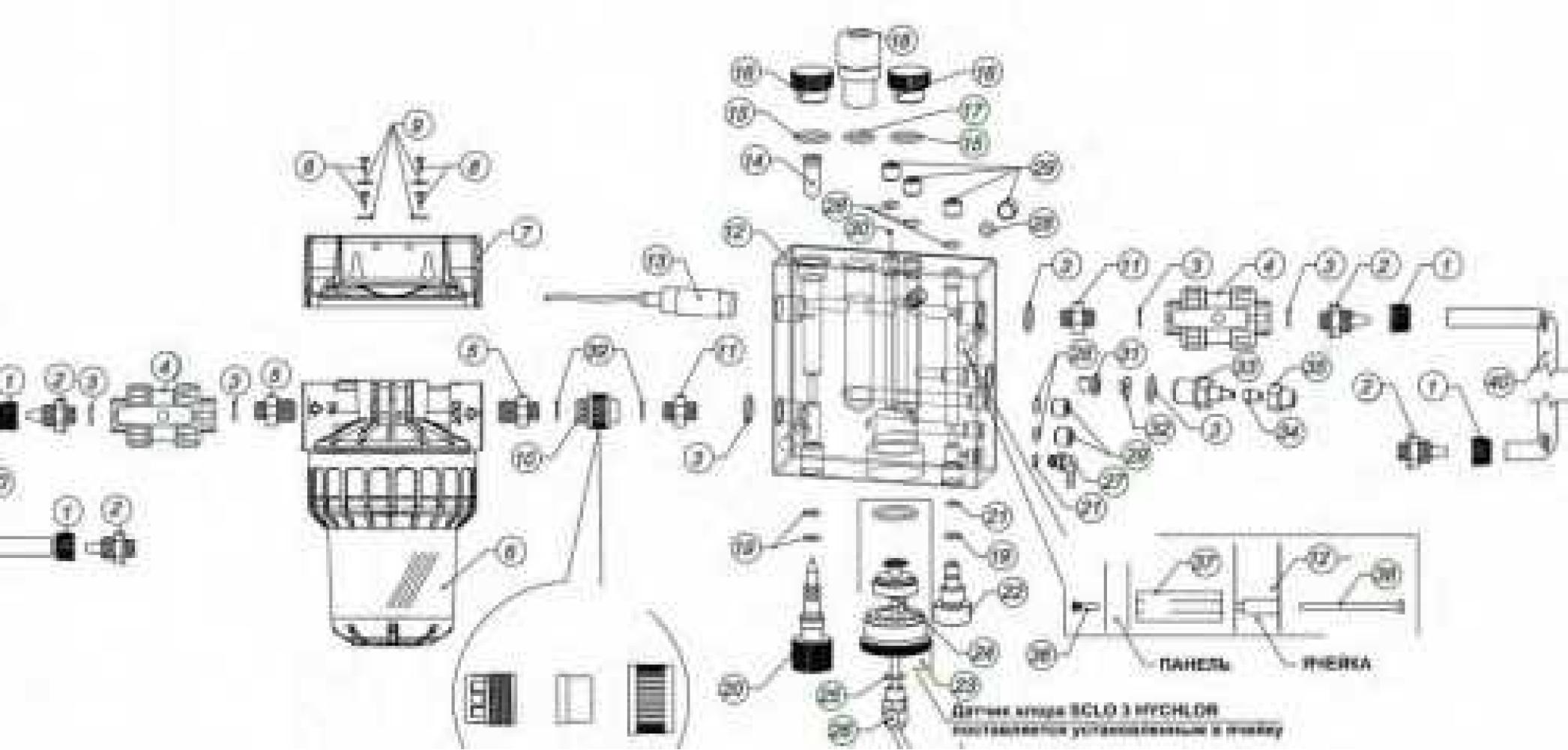 - Для корректной и правильной работы датчика хлора SCLO 3 HYCHLOR необходим постоянный поток 40–60 л/ч.