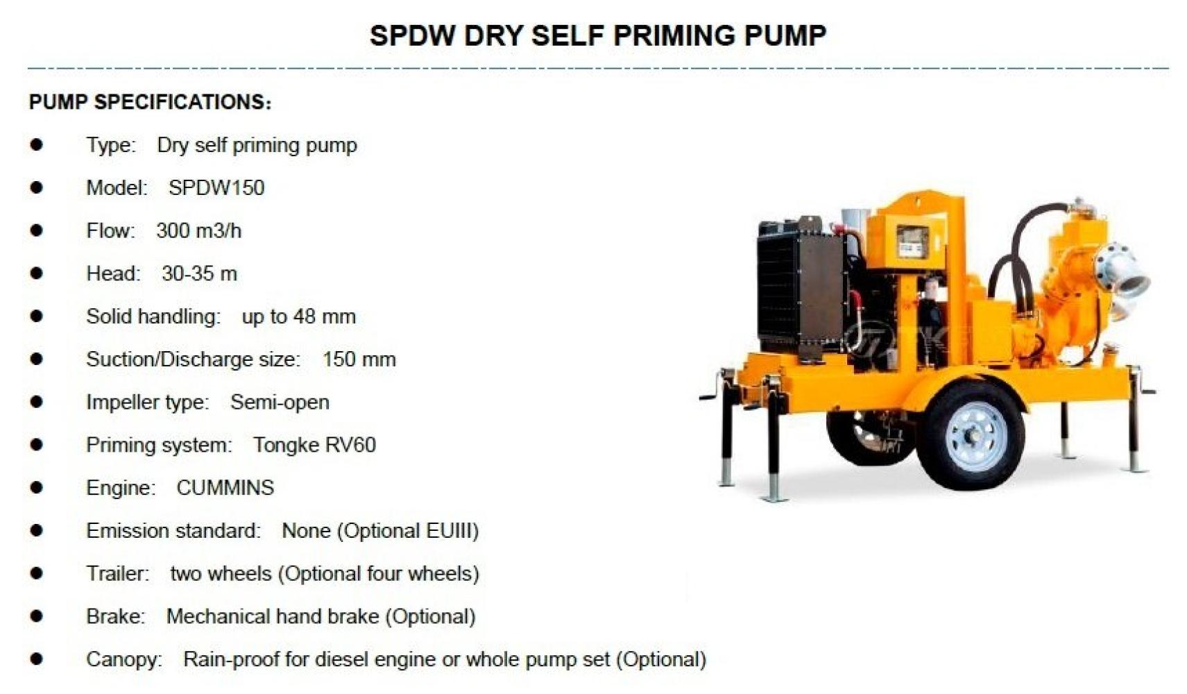 Diesel pumping station with pump model SPDW150, capacity 300 m3/h, head 30-35 m,