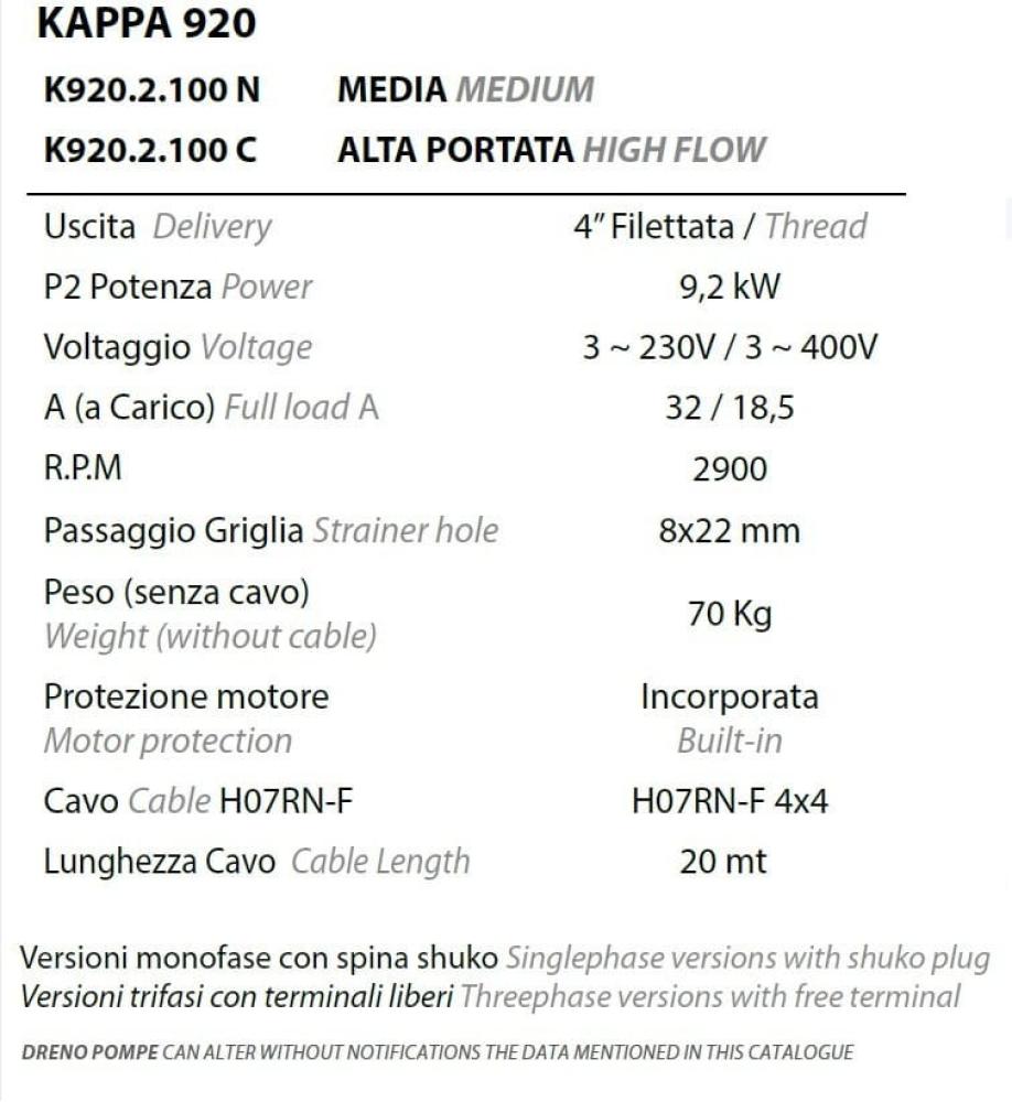 - катафорез. Характеристика: асинхронный двигатель с 2 полюсами 50 Гц; класс изоляции: F (155°) ; степень защиты: IP68; максимальное погружение: 20 м; максимальная температура перекачиваемой жидкости: 40 ° C ; максимальная плотность перекачиваемой жидкости: 1100 кг / м3; PH перекачиваемой жидкости: от 5-8. Условные обозначения: М-1 фаза 220V Т-3 фазы 380V 2900 об./ мин.
