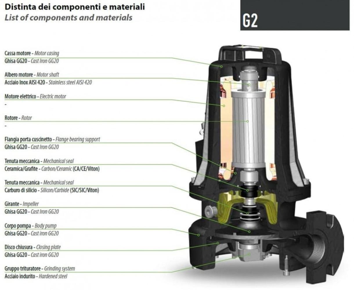 Применение насоса: Серия G имеет встроенный мацератор на входе. Это разрушает твердые частицы в сточных водах, что позволяет транспортировать их по относительно узким, часто уже существующим трубам.
