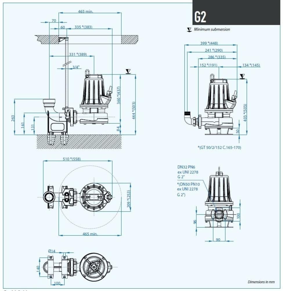 - 2 полюса 50 Гц Горизонтальный напорный патрубок