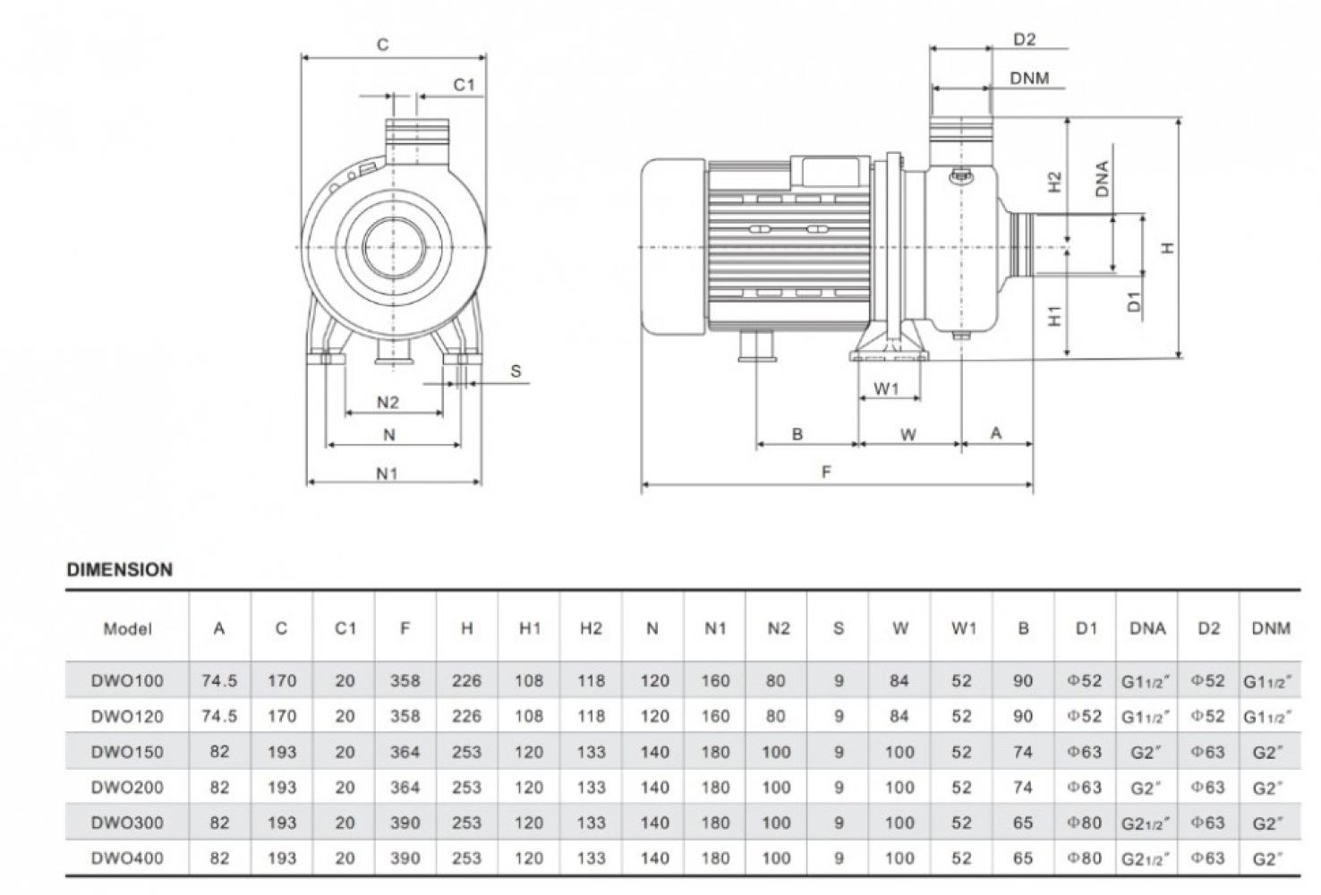 Насосы серии DWO применяются для перекачивания умеренно агрессивным жидкостям, с возможным содержанием твердых взвешенных примесей размером не более 19 мм