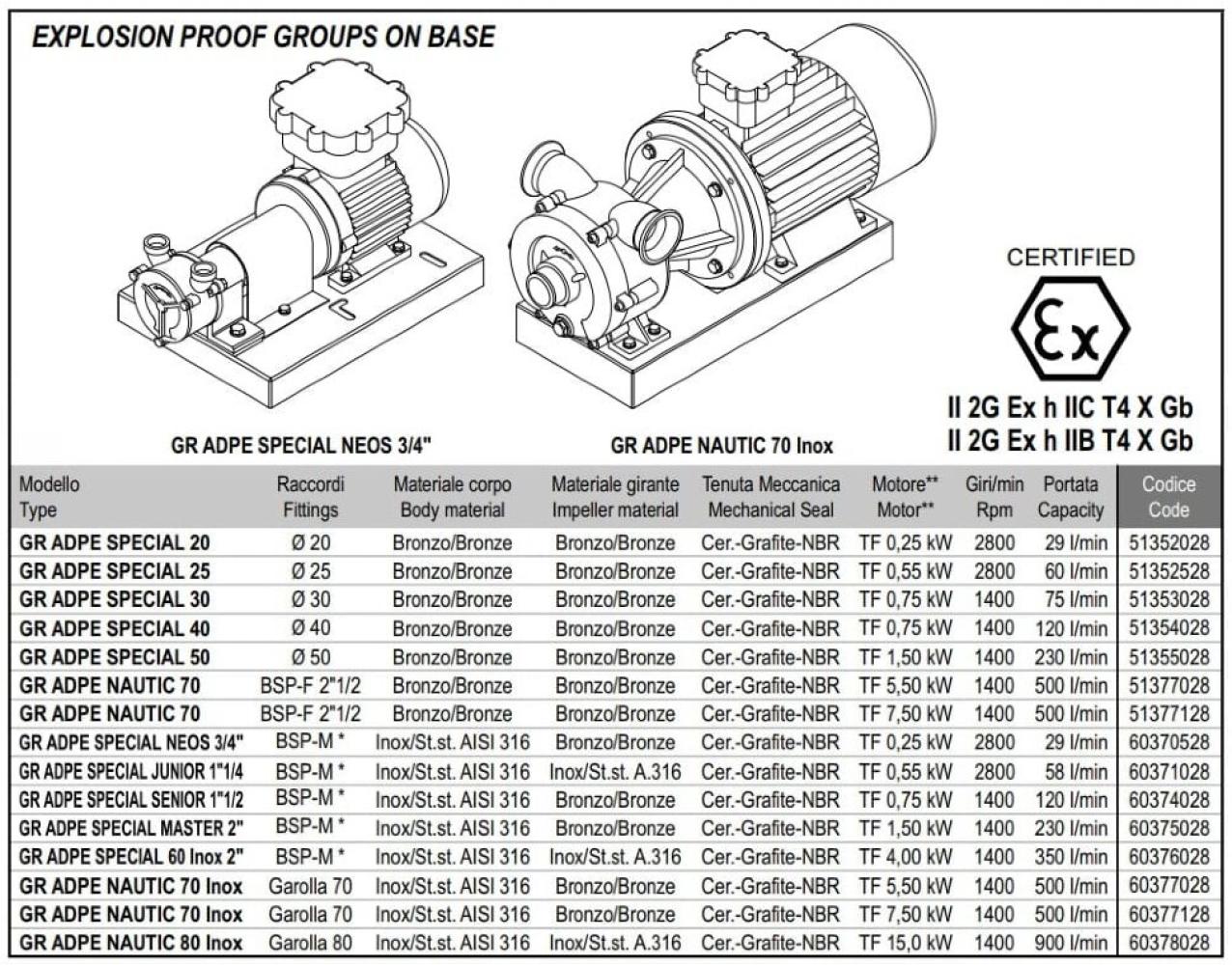 Жидкостные кольцевые насосы, реверсивные, пригодны для перекачки чистых жидкостей без твердых частиц с максимальной вязкостью 100 сП. Насосы доступны как из нержавеющей стали AISI 316, так и из бронзы. В зависимости от материала изготовления насосы находят широкое применение в различных отраслях: виноделии и пищевой промышленности (вино, сусло, уксус, масло, фруктовые соки, пиво, сиропы и рассол), молочной промышленности (молоко, сыворотка и т.п.), химическая промышленность (кислоты, растворители, фотографические жидкости, средства для (антикриптогамные средства, жидкие удобрения, газойль и т.п.), судоходство (морская вода, пресная вода, газойль и т.п.).