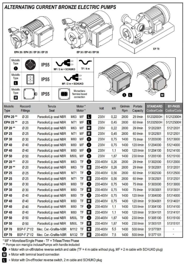 Жидкостные кольцевые насосы, реверсивные, пригодны для перекачки чистых жидкостей без твердых частиц с максимальной вязкостью 100 сП. Насосы доступны как из нержавеющей стали AISI 316, так и из бронзы. В зависимости от материала изготовления насосы находят широкое применение в различных отраслях: виноделии и пищевой промышленности (вино, сусло, уксус, масло, фруктовые соки, пиво, сиропы и рассол), молочной промышленности (молоко, сыворотка и т.п.), химическая промышленность (кислоты, растворители, фотографические жидкости, средства для (антикриптогамные средства, жидкие удобрения, газойль и т.п.), судоходство (морская вода, пресная вода, газойль и т.п.).