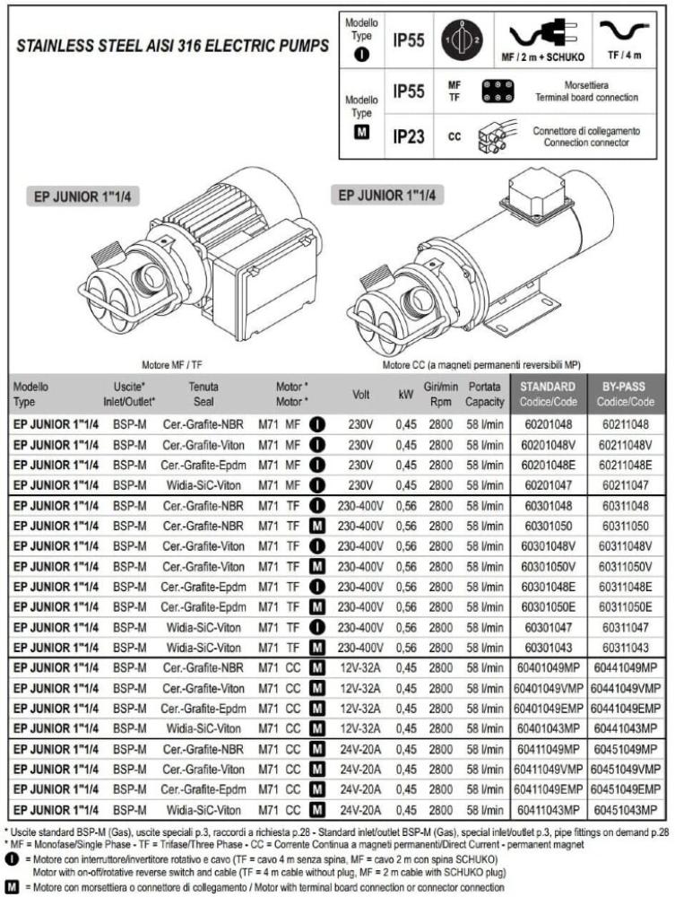 Жидкостные кольцевые насосы, реверсивные, пригодны для перекачки чистых жидкостей без твердых частиц с максимальной вязкостью 100 сП. Насосы доступны как из нержавеющей стали AISI 316, так и из бронзы. В зависимости от материала изготовления насосы находят широкое применение в различных отраслях: виноделии и пищевой промышленности (вино, сусло, уксус, масло, фруктовые соки, пиво, сиропы и рассол), молочной промышленности (молоко, сыворотка и т.п.), химическая промышленность (кислоты, растворители, фотографические жидкости, средства для (антикриптогамные средства, жидкие удобрения, газойль и т.п.), судоходство (морская вода, пресная вода, газойль и т.п.).