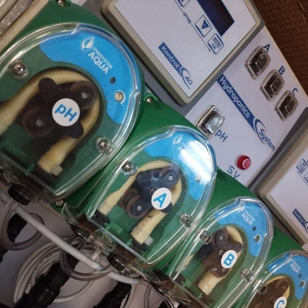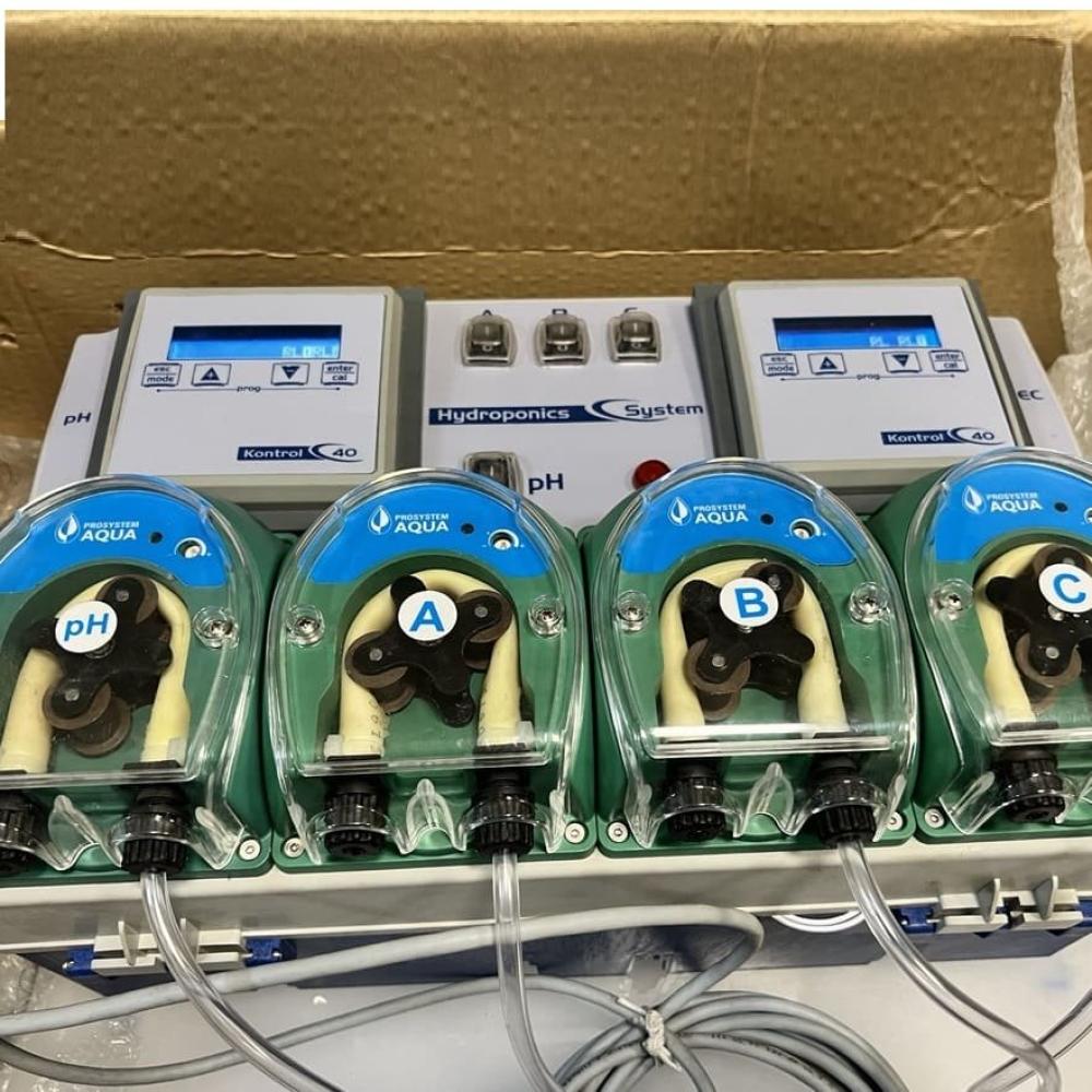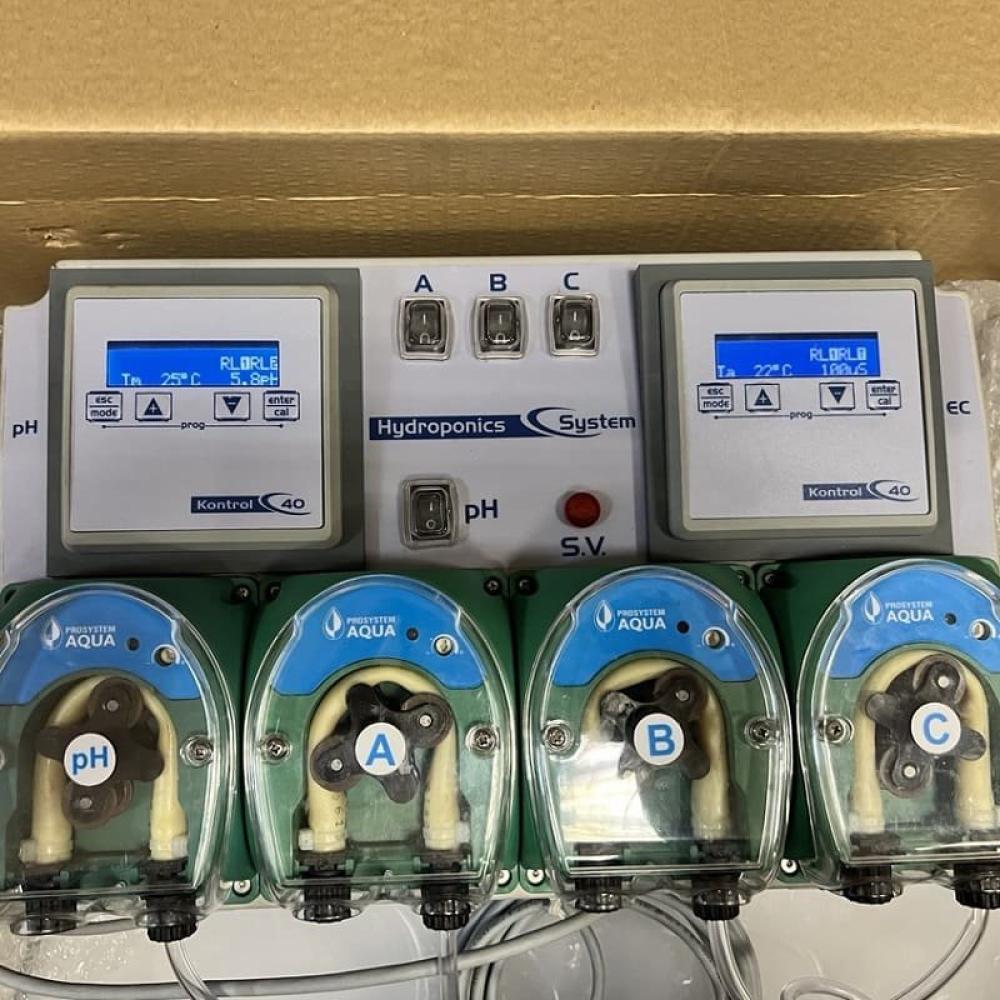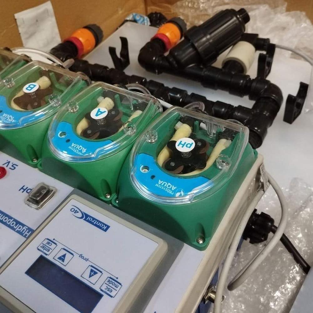 и регулировать рН воды внутри резервуара. Контроль дозировки удобрения осуществляется автоматически непрерывно измеряя проводимость, получив окончательный раствор или смесь с желаемой проводимостью для клиента. Регуляция рН воды также осуществляется непрерывно, получая конечный рН, который запрашивает пользователь. Дозирование потока каждого насоса с производительностью от 0 до 7 л/ч регулируется независимо. Запрашиваемый поток может быть увеличен в соответствии с заказом. Возможно, самая передовая система фертигации и лучшее соотношение цены и качества на рынке. Гидропонная система HYDROPONIC SYSTEM поставляется с ручной сборкой и инструкцией по эксплуатации, комплект поставки: регулятор питательных веществ Гидропонная система, pH зонд, датчик EC, держатель pH-зонда, соединительный кабель EC, pH 4 и калибровочные бутылки pH7, всасывающие и нагнетательные трубы, форсунки, кронштейны и настенные розетки для крепления, PPR-коллектор и датчик потока. ГИДРОПОННАЯ СИСТЕМА УДОБРЕНИЙ. -