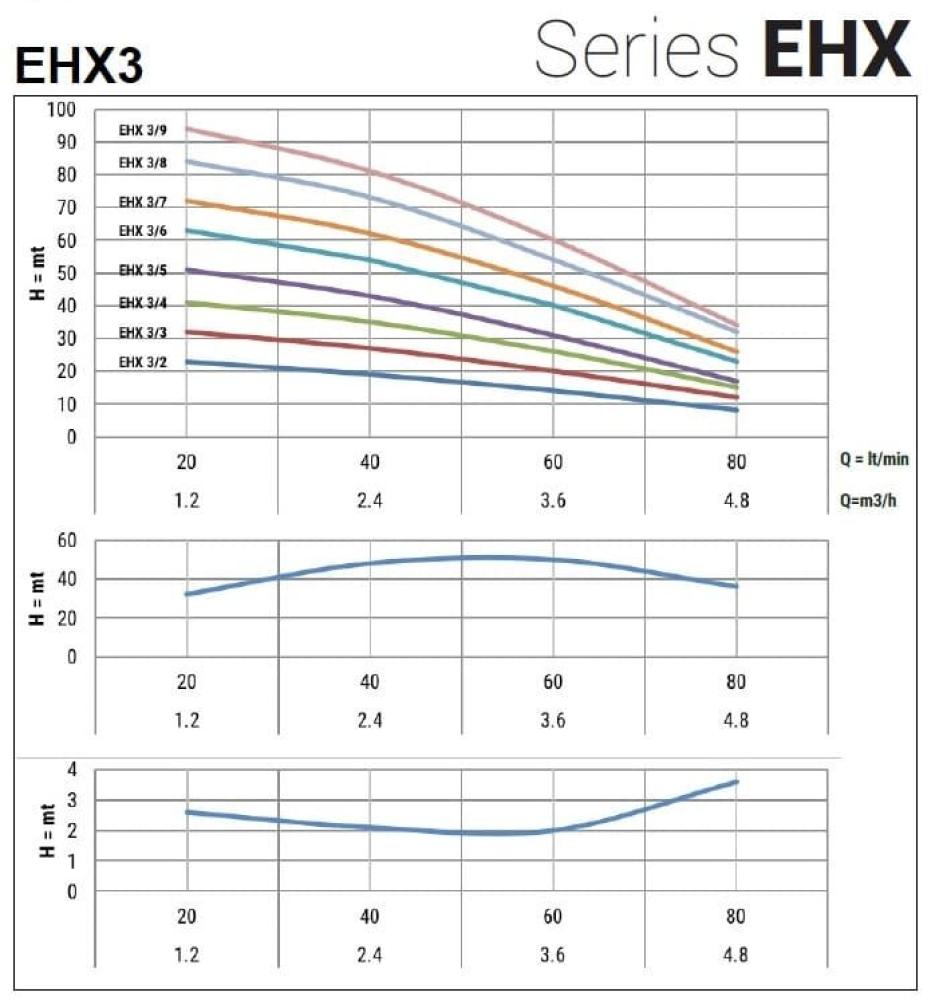 Горизонтальные многоступенчатые насосы серии EHX полностью изготовлены из нержавеющей стали, подходят для бытового, сельскохозяйственного и промышленного применения. Все детали, контактирующие с перекачиваемой жидкостью изготовлены из нержавеющей стали AISI 304 для обеспечения максимальной гигиеничности и стойкости к коррозии. Корпус насоса, рабочее колесо, диффузор, вал: нержавеющая сталь AISI 304. Механическое уплотнение: Car/Cer/EPDM. Кронштейн и корпус мотора: алюминий.