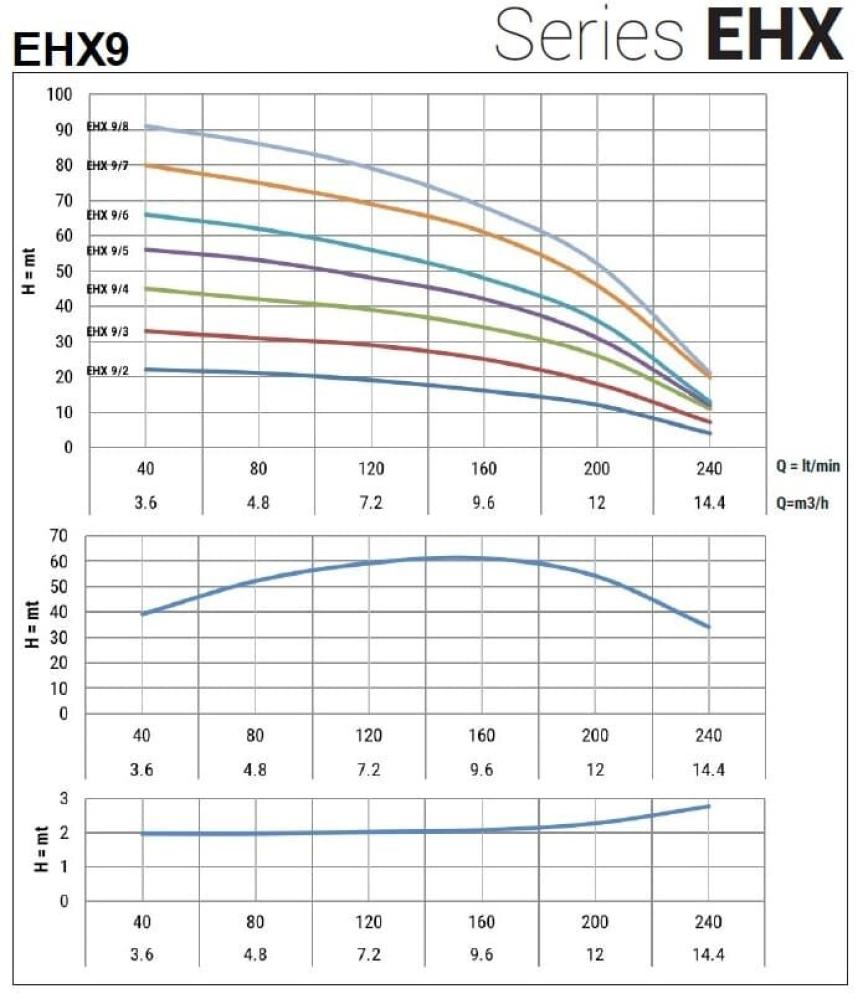 Горизонтальные многоступенчатые насосы серии EHX полностью изготовлены из нержавеющей стали, подходят для бытового, сельскохозяйственного и промышленного применения. Все детали, контактирующие с перекачиваемой жидкостью изготовлены из нержавеющей стали AISI 304 для обеспечения максимальной гигиеничности и стойкости к коррозии. Корпус насоса, рабочее колесо, диффузор, вал: нержавеющая сталь AISI 304. Механическое уплотнение: Car/Cer/EPDM. Кронштейн и корпус мотора: алюминий.