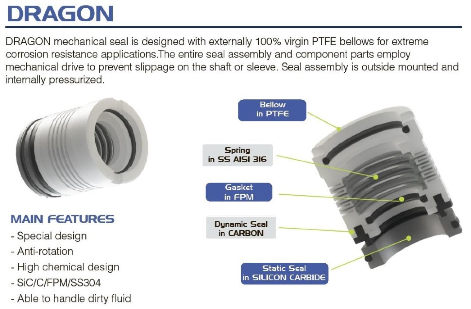 - Mechanical Seal, SiC/C/FPM/SS304 (PTFE bellows)