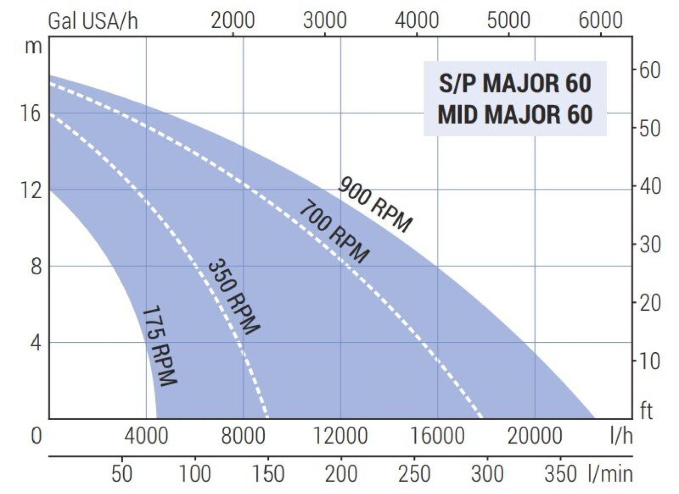 - Высота подачи (max), м.вод.ст