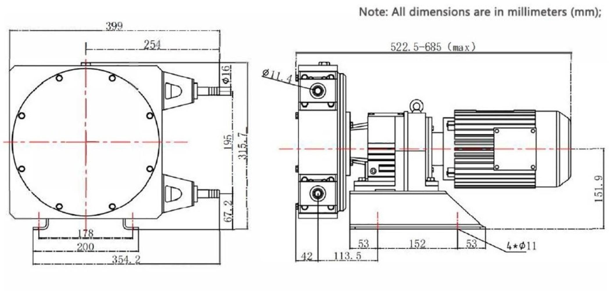 Индустриальный шланговый насос серии JXHIN используется для перекачивания абразивных шламов, едких кислот, крупных твердых частиц, газожидкостных смесей, высоковязких жидкостей.