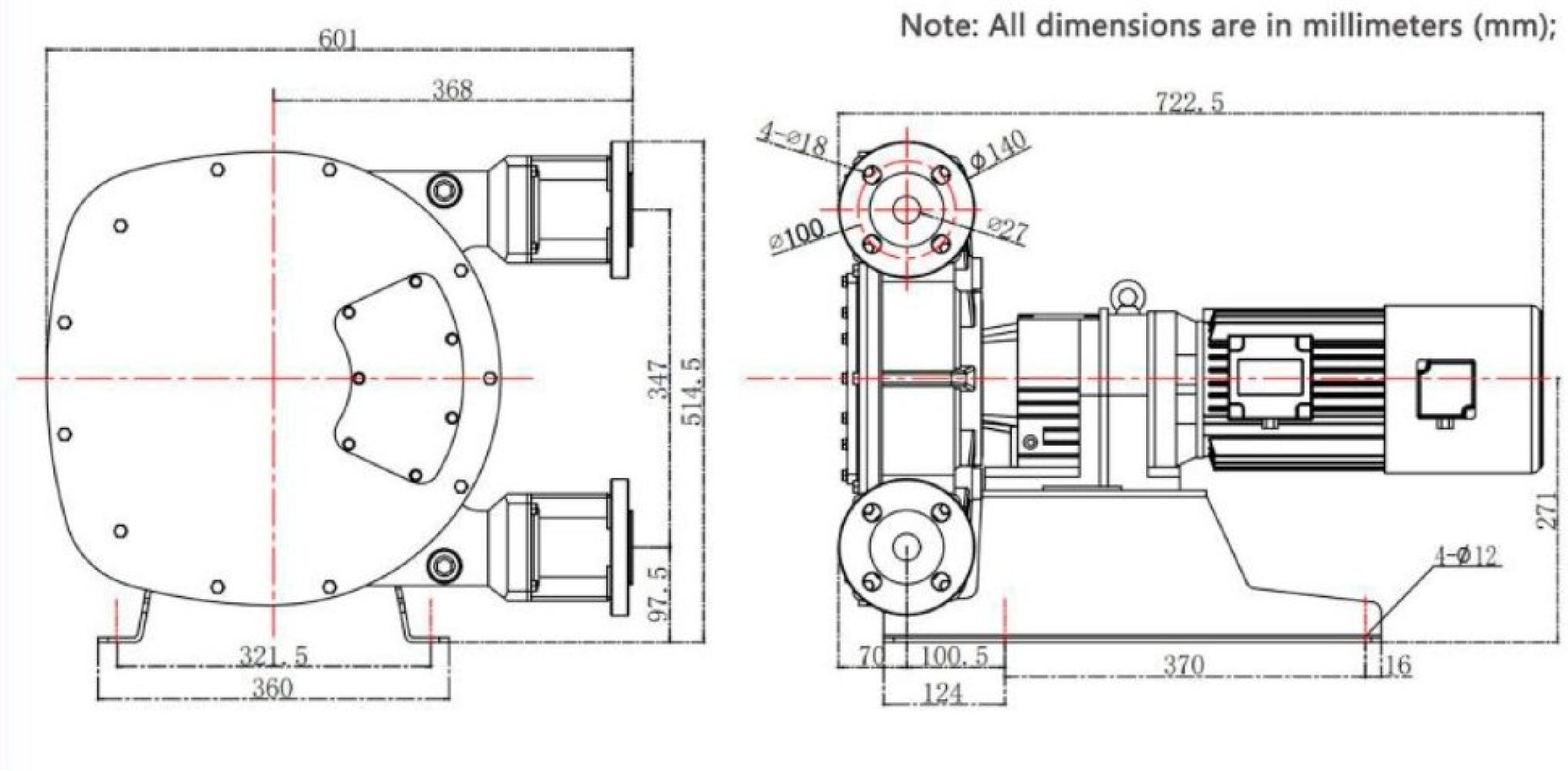 Индустриальный шланговый насос серии JXHIN используется для перекачивания абразивных шламов, едких кислот, крупных твердых частиц, газожидкостных смесей, высоковязких жидкостей.