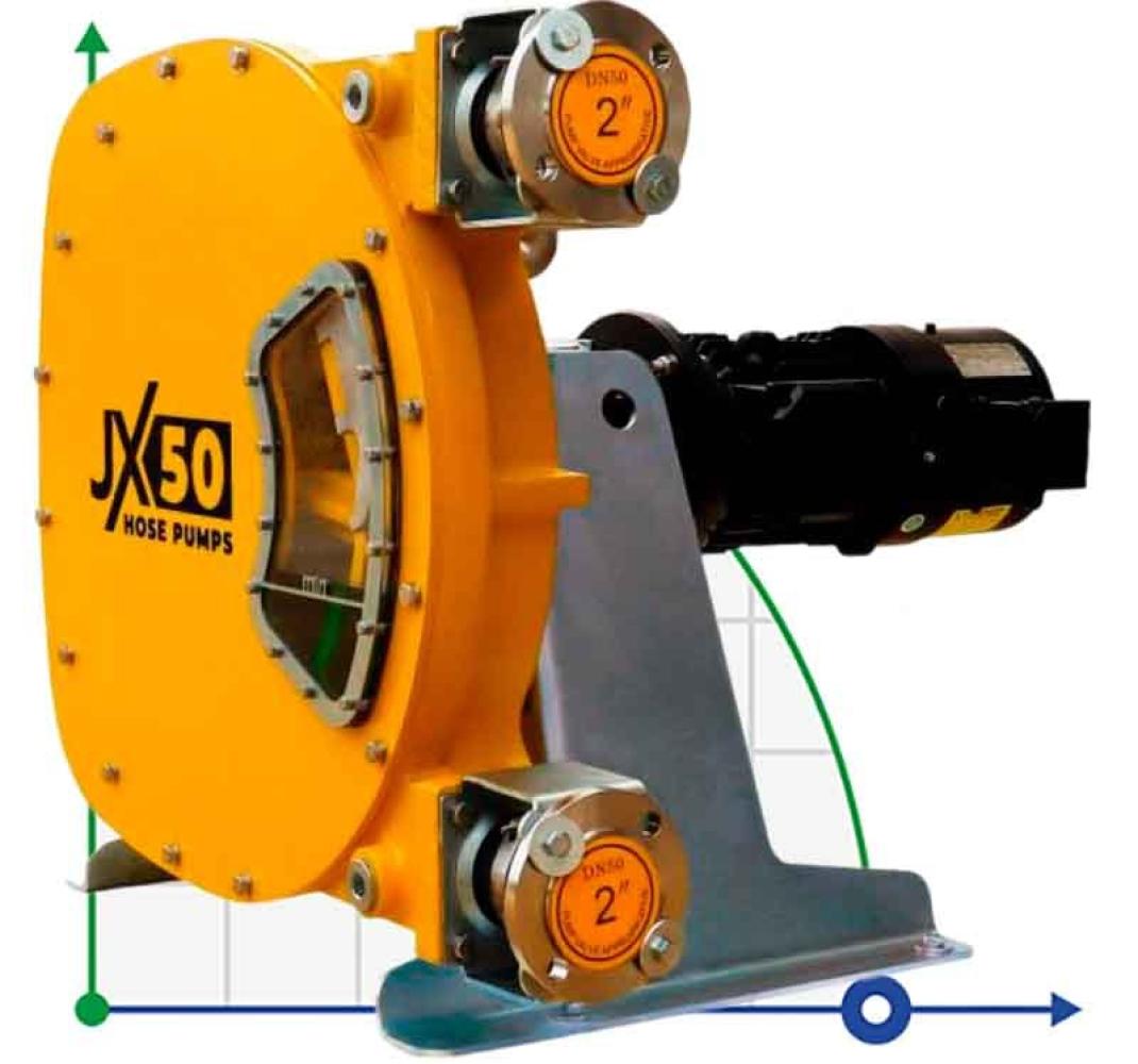 Индустриальный шланговый насос серии JXHIN используется для перекачивания абразивных шламов, едких кислот, крупных твердых частиц, газожидкостных смесей, высоковязких жидкостей.