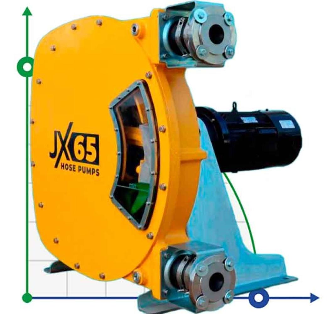 Индустриальный шланговый насос серии JXHIN используется для перекачивания абразивных шламов, едких кислот, крупных твердых частиц, газожидкостных смесей, высоковязких жидкостей.