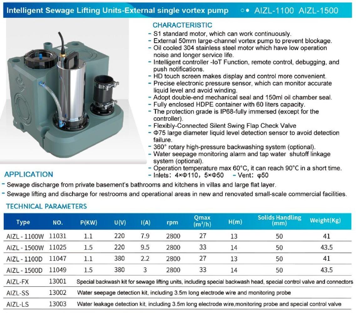 Применение: подъем и отвод сточных вод из ванных комнат и кухонь в частных подвальных помещениях в виллах и больших квартирах, офисов, бомбоубежищ. Подъем и отвод сточных вод для уборных и производственных помещений в новых и реконструированных небольших коммерческих объектах. Характеристики: