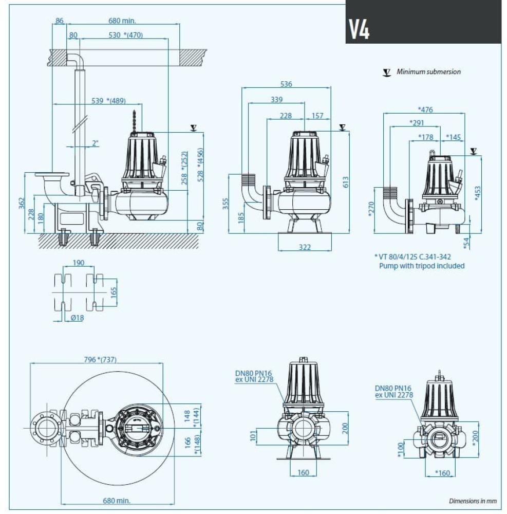 Пределы использования: максимально допустимая температура жидкости: 40°C при полностью погруженном насосе; по запросу, специальная версия (за исключением ATEX) для выдерживания температуры жидкости до 60°C с полностью погруженным насосом, без обслуживания S1; максимальная глубина погружения: 20 м; допустимое значение рН: 6-10; гидравлические характеристики, пригодные для жидкостей с плотностью <1,1 кг/дм3; допустимое напряжение: 220V/380V ±5% в зависимости от насоса; допустимая частота: 50 Гц ±2%.