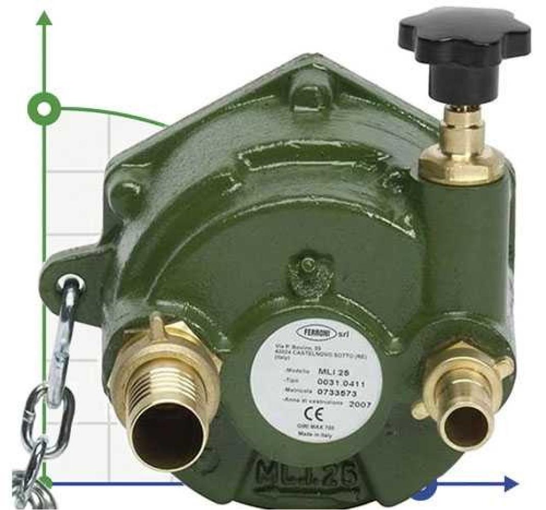 Эта модель "MLI 25" оснащена латунным клапаном регулирования давления и перепускным клапаном, который позволяет рециркуляцию воды на выходе.