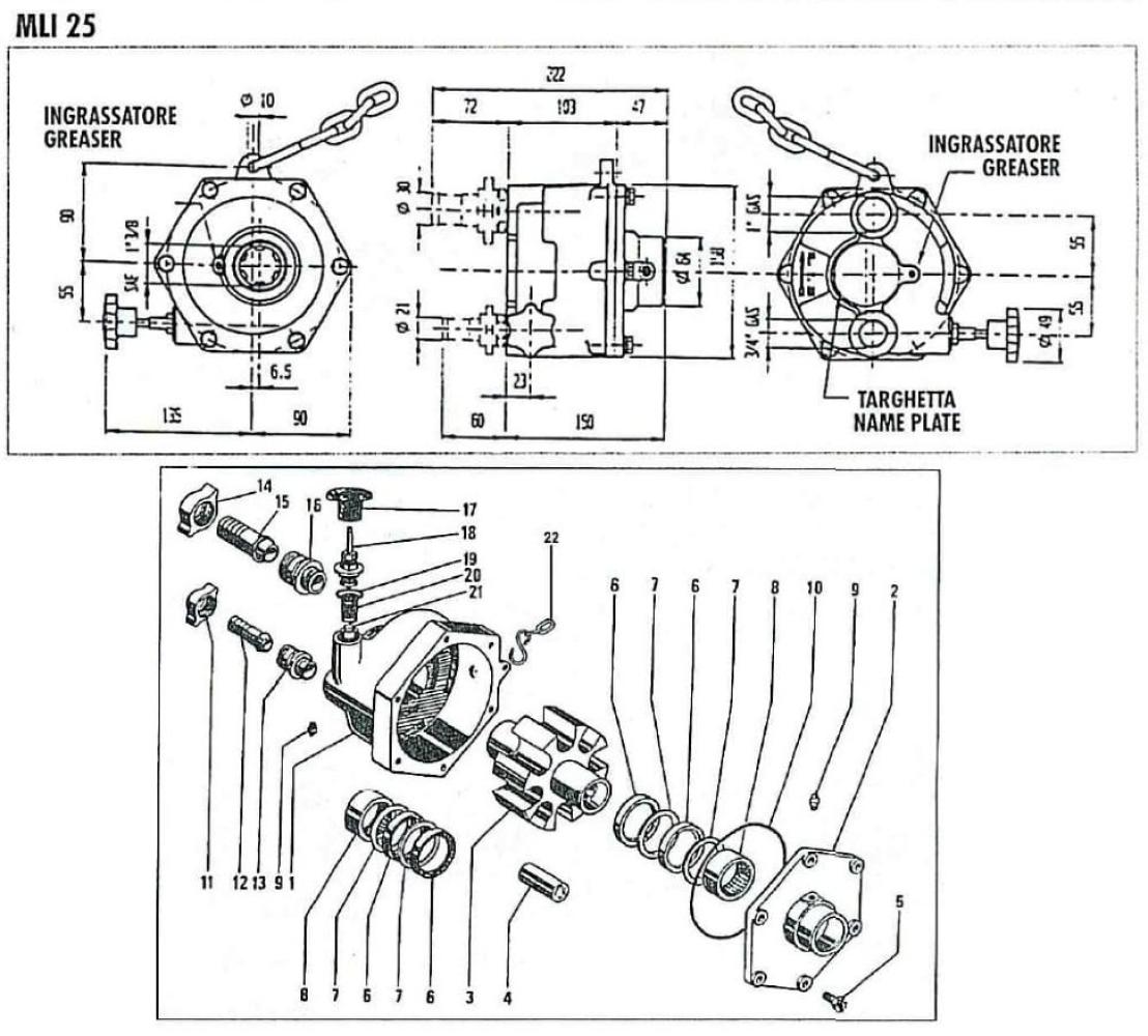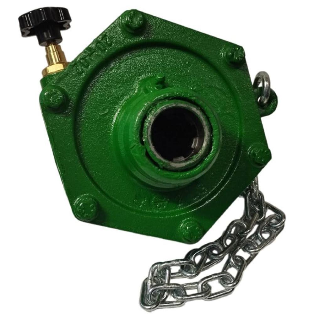 ротор с нейлоновыми роликами, крышка из чугуна. В комплекте цепь для крепления к неподвижной точке трактора