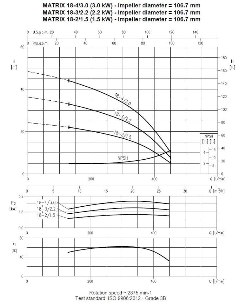 Большой ряд моделей, чтобы обеспечить требования по производительности и высоте подачи. Все металлические узлы, контактирующие с жидкостью, изготовлены из нержавеющей стали AISI 304. Втулки и подшипники, контактирующие с жидкостью, изготовлены из карбида вольфрама и керамики. Кольцо-вкладыш с AISI 304 и PTFE. Технические данные: производительность до 27 м3/час. Высота подачи до 104 м. T.E.F.C. 2 Полюсный двигатель. Класс изоляции F. Степень защиты IP 55.