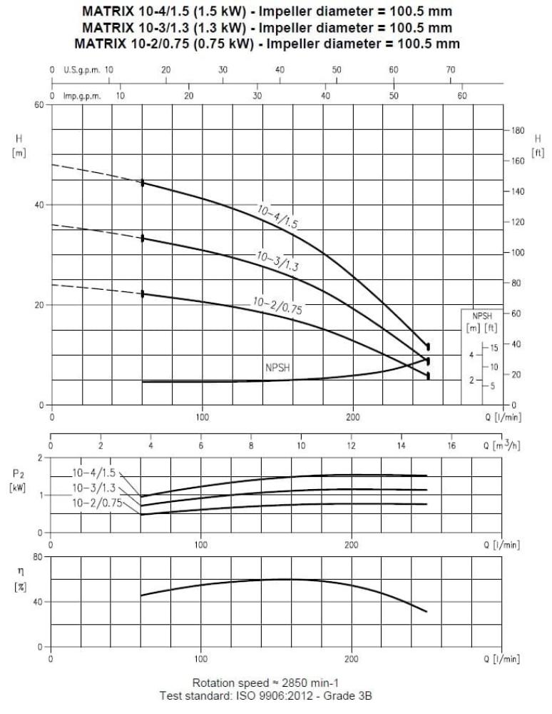 Большой ряд моделей, чтобы обеспечить требования по производительности и высоте подачи. Все металлические узлы, контактирующие с жидкостью, изготовлены из нержавеющей стали AISI 304. Втулки и подшипники, контактирующие с жидкостью, изготовлены из карбида вольфрама и керамики. Кольцо-вкладыш с AISI 304 и PTFE. Технические данные: производительность до 27 м3/час. Высота подачи до 104 м. T.E.F.C. 2 Полюсный двигатель. Класс изоляции F. Степень защиты IP 55.