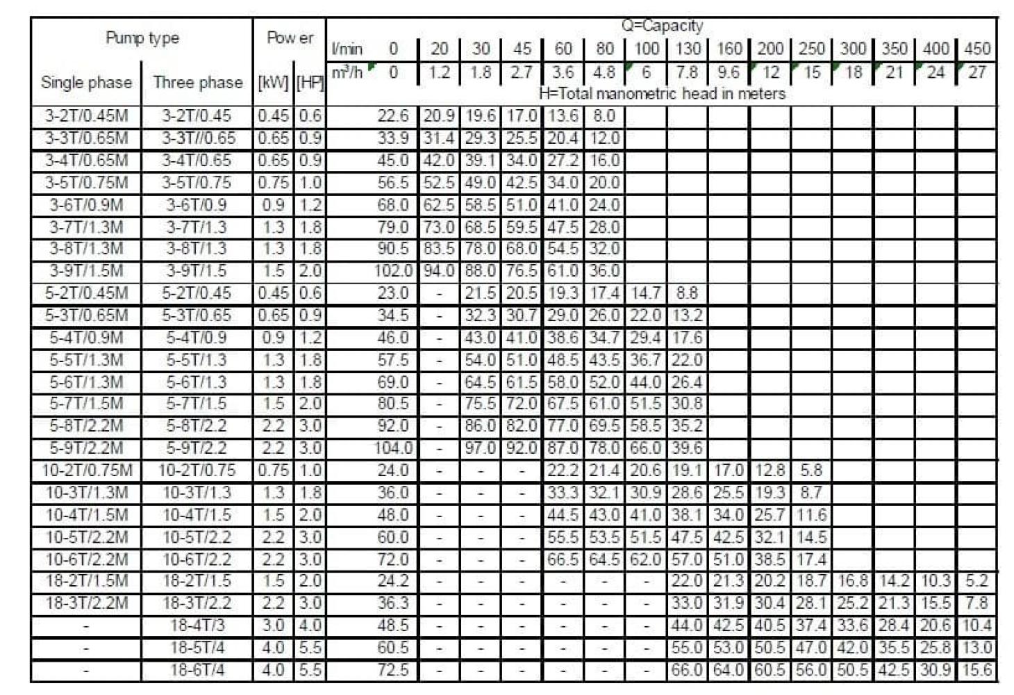 Большой ряд моделей, чтобы обеспечить требования по производительности и высоте подачи. Все металлические узлы, контактирующие с жидкостью, изготовлены из нержавеющей стали AISI 304. Втулки и подшипники, контактирующие с жидкостью, изготовлены из карбида вольфрама и керамики. Кольцо-вкладыш с AISI 304 и PTFE. Технические данные: производительность до 27 м3/час. Высота подачи до 104 м. T.E.F.C. 2 Полюсный двигатель. Класс изоляции F. Степень защиты IP 55.