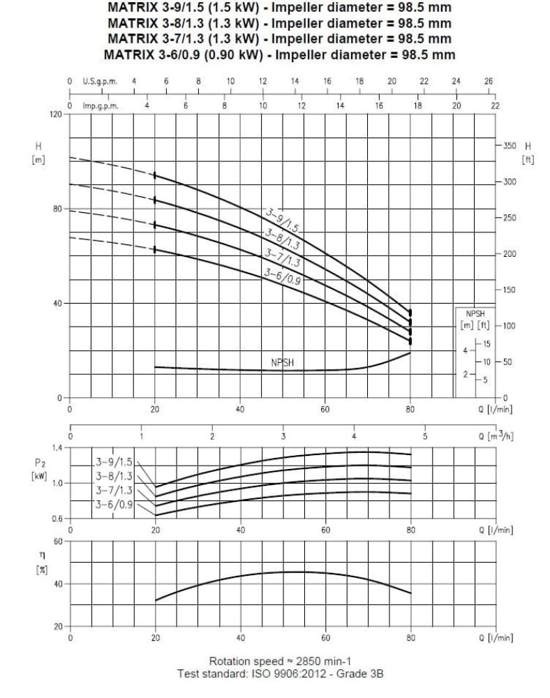Большой ряд моделей, чтобы обеспечить требования по производительности и высоте подачи. Все металлические узлы, контактирующие с жидкостью, изготовлены из нержавеющей стали AISI 304. Втулки и подшипники, контактирующие с жидкостью, изготовлены из карбида вольфрама и керамики. Кольцо-вкладыш с AISI 304 и PTFE. Технические данные: производительность до 27 м3/час. Высота подачи до 104 м. T.E.F.C. 2 Полюсный двигатель. Класс изоляции F. Степень защиты IP 55.