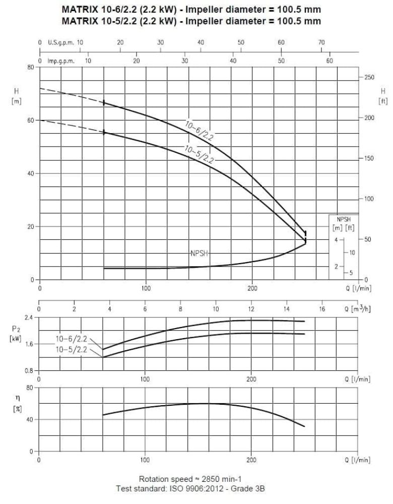 Большой ряд моделей, чтобы обеспечить требования по производительности и высоте подачи. Все металлические узлы, контактирующие с жидкостью, изготовлены из нержавеющей стали AISI 304. Втулки и подшипники, контактирующие с жидкостью, изготовлены из карбида вольфрама и керамики. Кольцо-вкладыш с AISI 304 и PTFE. Технические данные: производительность до 27 м3/час. Высота подачи до 104 м. T.E.F.C. 2 Полюсный двигатель. Класс изоляции F. Степень защиты IP 55.
