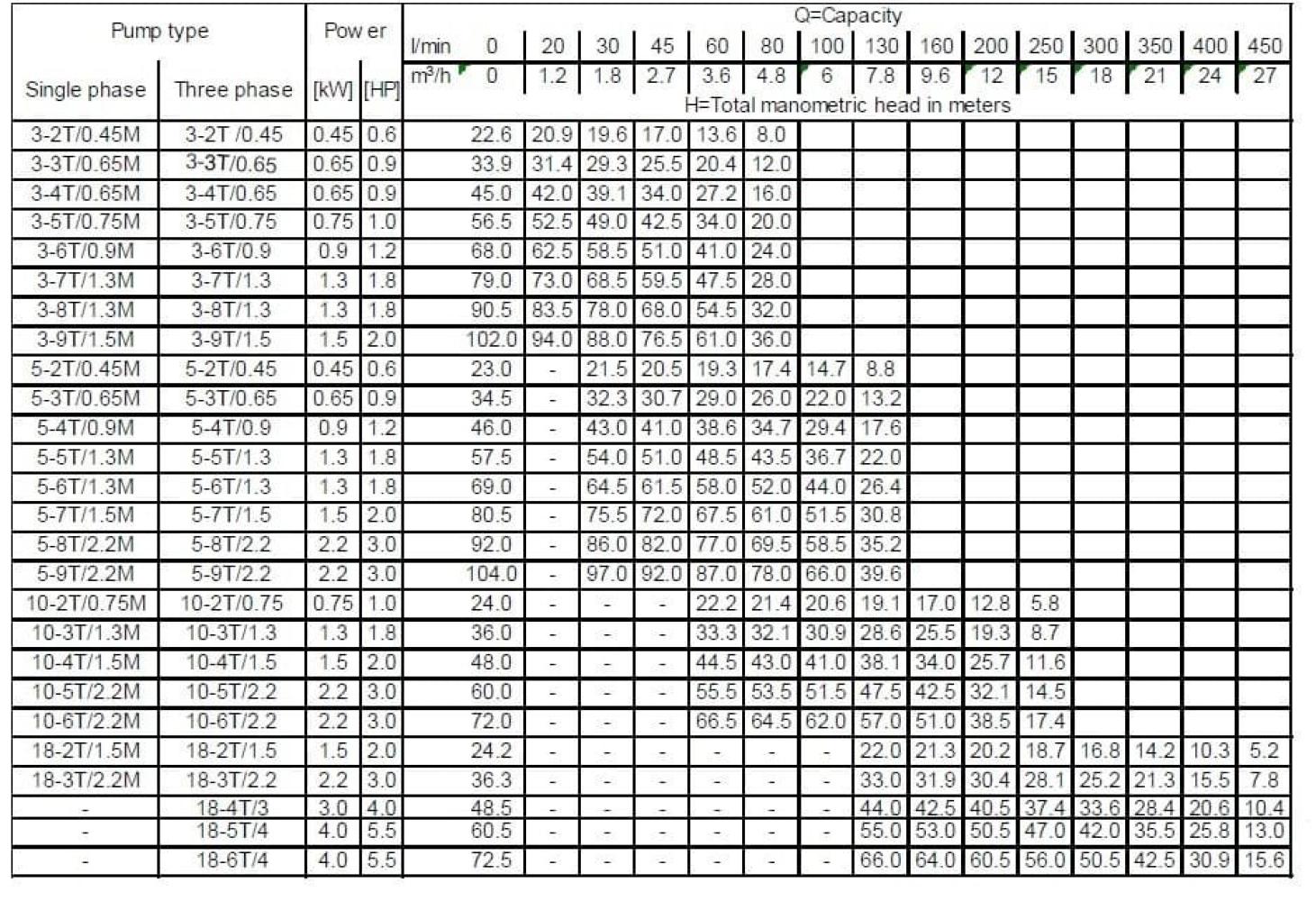 Большой ряд моделей, чтобы обеспечить требования по производительности и высоте подачи. Все металлические узлы, контактирующие с жидкостью, изготовлены из нержавеющей стали AISI 304. Втулки и подшипники, контактирующие с жидкостью, изготовлены из карбида вольфрама и керамики. Кольцо-вкладыш с AISI 304 и PTFE. Технические данные: производительность до 27 м3/час. Высота подачи до 104 м. T.E.F.C. 2 Полюсный двигатель. Класс изоляции F. Степень защиты IP 55.