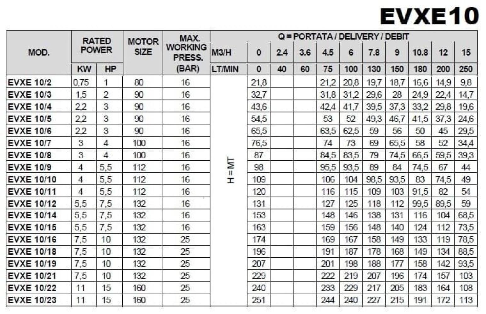 Вертикальные многоступенчатые насосы серии EVXE пригодны для различных применений, преимущественно в промышленности и строительстве (питание котлов, циркуляция горячей и холодной воды для систем отопления/охлаждения/кондиционирования, установки для повышения давления и водоснабжения, моющие установки, водоочистные сооружения и т.д.). Все части насоса, контактирующие с жидкостью, изготовлены из нержавеющей стали AISI 304 (AISI 316 по заказу). Профессиональные вертикальные многоступенчатые насосы имеют простой монтаж в линию (инлайн), а также легкий демонтаж и техническое обслуживание.