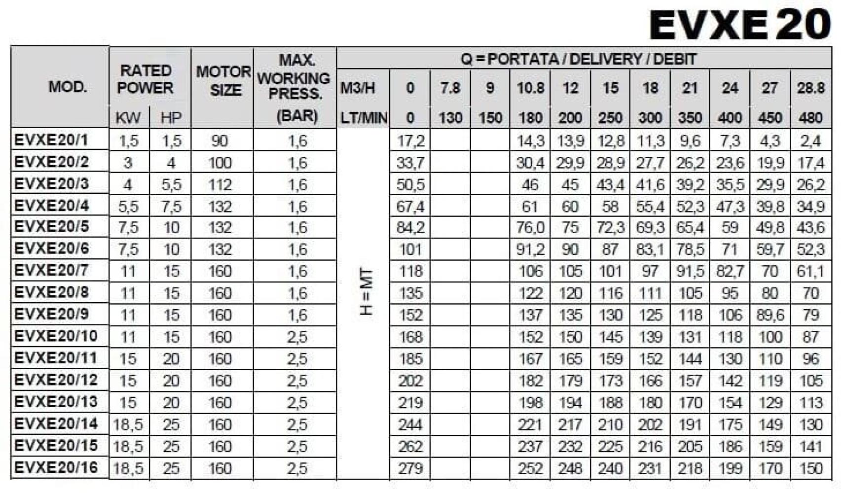 - Aquatica LVR, Calpeda MXV, Dab KVC, EBARA EVM, Ebara EVMS, EBARA EVMW, Grundfos CR, Lowara SV, Speroni RVM, VMtec PRIMA VMEV, Varna