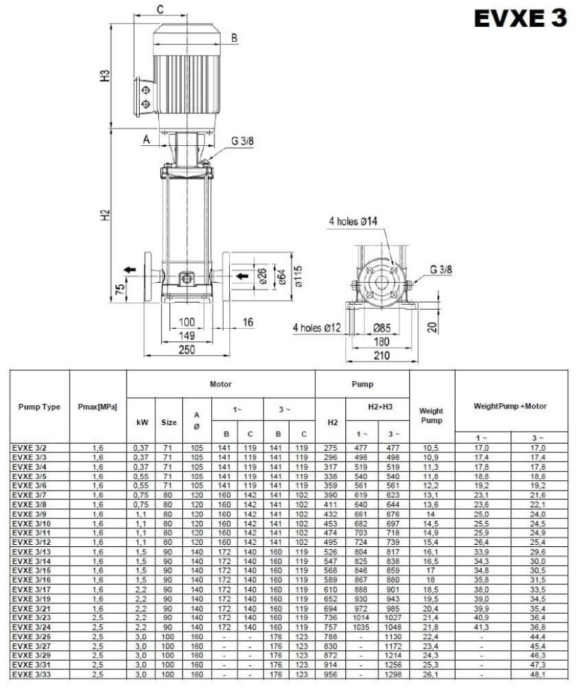 Вертикальные многоступенчатые насосы серии EVXE пригодны для различных применений, преимущественно в промышленности и строительстве (питание котлов, циркуляция горячей и холодной воды для систем отопления/охлаждения/кондиционирования, установки для повышения давления и водоснабжения, моющие установки, водоочистные сооружения и т.д.). Все части насоса, контактирующие с жидкостью, изготовлены из нержавеющей стали AISI 304 (AISI 316 по заказу). Профессиональные вертикальные многоступенчатые насосы имеют простой монтаж в линию (инлайн), а также легкий демонтаж и техническое обслуживание.