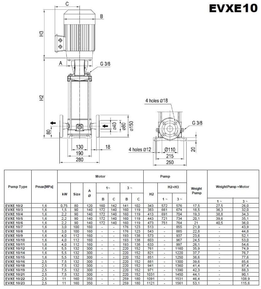 Вертикальные многоступенчатые насосы серии EVXE пригодны для различных применений, преимущественно в промышленности и строительстве (питание котлов, циркуляция горячей и холодной воды для систем отопления/охлаждения/кондиционирования, установки для повышения давления и водоснабжения, моющие установки, водоочистные сооружения и т.д.). Все части насоса, контактирующие с жидкостью, изготовлены из нержавеющей стали AISI 304 (AISI 316 по заказу). Профессиональные вертикальные многоступенчатые насосы имеют простой монтаж в линию (инлайн), а также легкий демонтаж и техническое обслуживание.