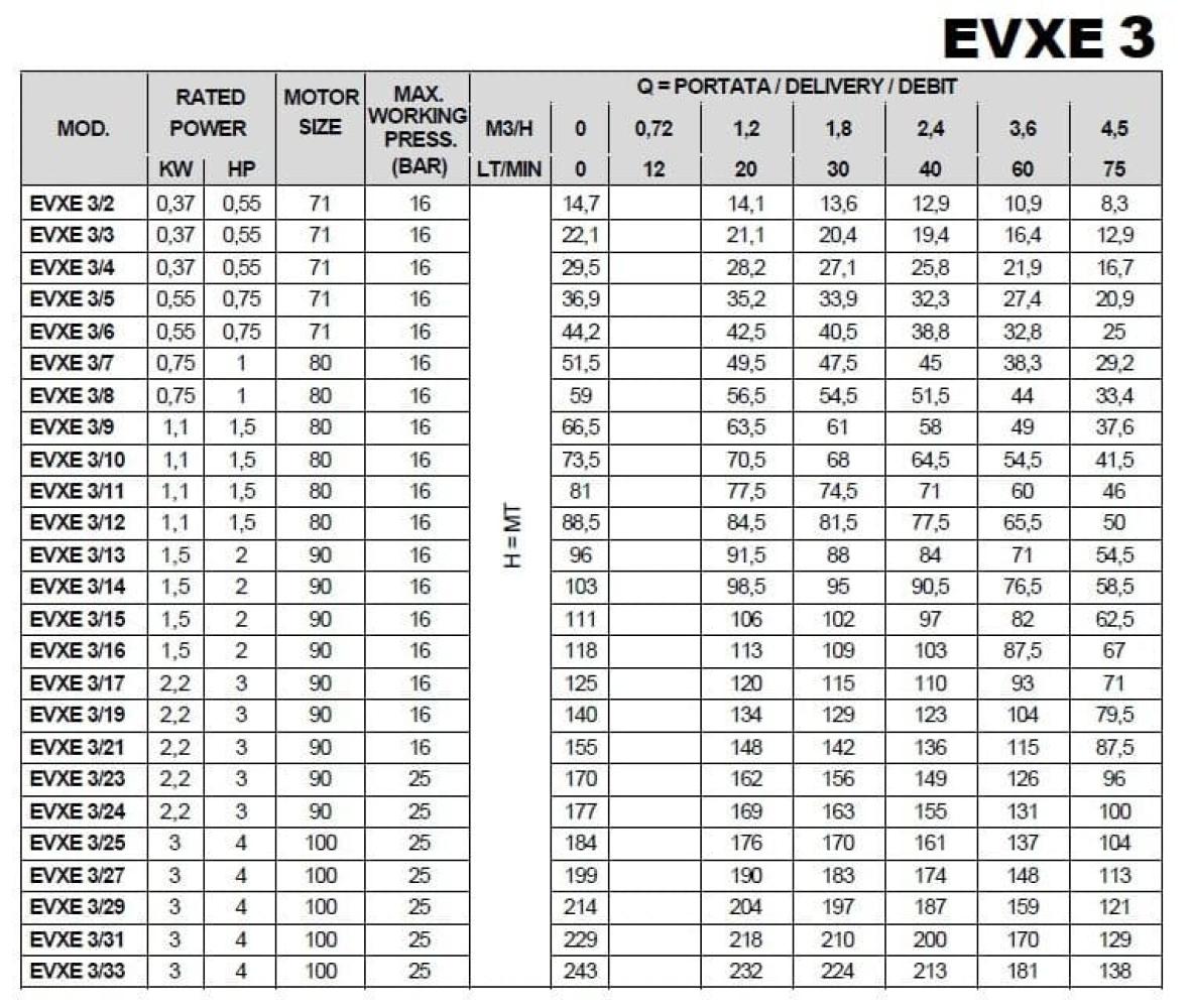 - Aquatica LVR, Calpeda MXV, Dab KVC, EBARA EVM, Ebara EVMS, EBARA EVMW, Grundfos CR, Lowara SV, Speroni RVM, VMtec PRIMA VMEV, Varna